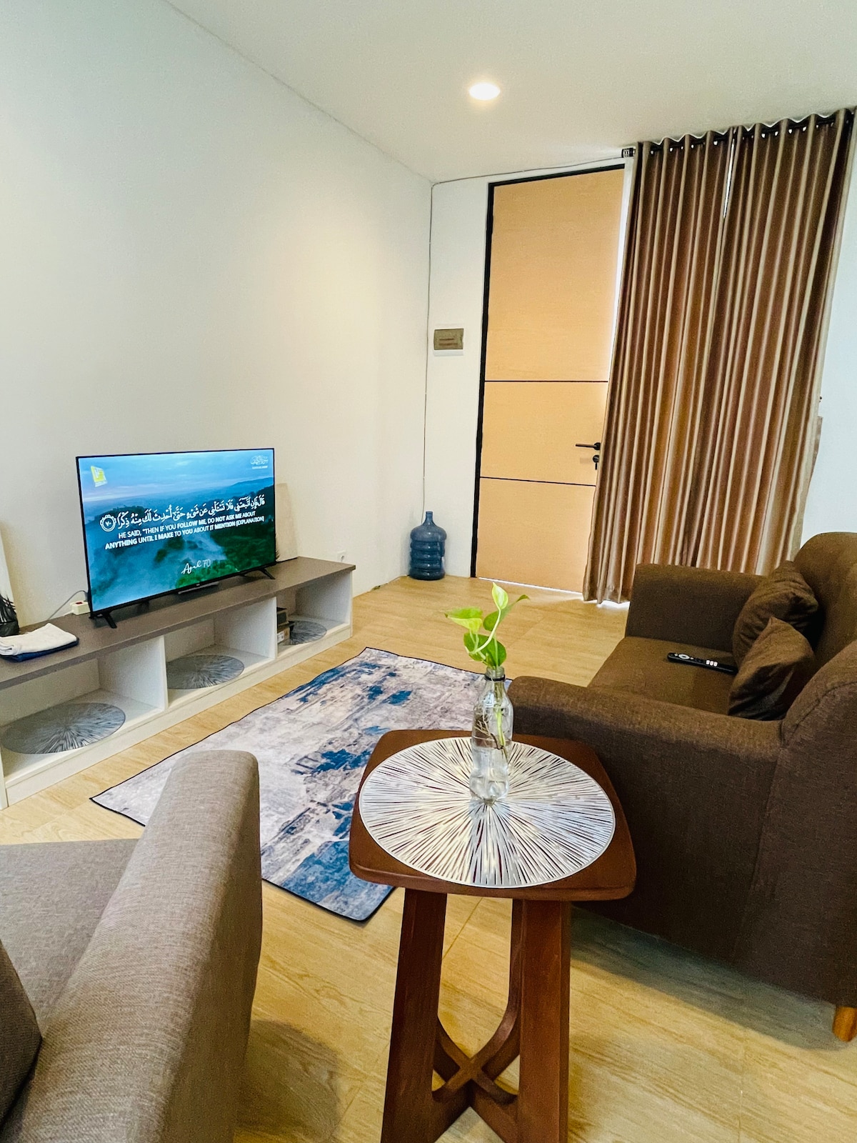 Welcome to our cozy ✨2-bedroom apartment ✨ nestled in the heart of BSD City. Perfect for families or small groups, our space offers a comfortable and inviting atmosphere for your stay. As you enter, you'll be greeted by a spacious living room featuring modern furnishings and plenty of natural light. The fully equipped kitchen is ideal for preparing delicious meals, with a dining area where you can enjoy them together. We look forward to hosting you and ensuring you have a memorable stay!