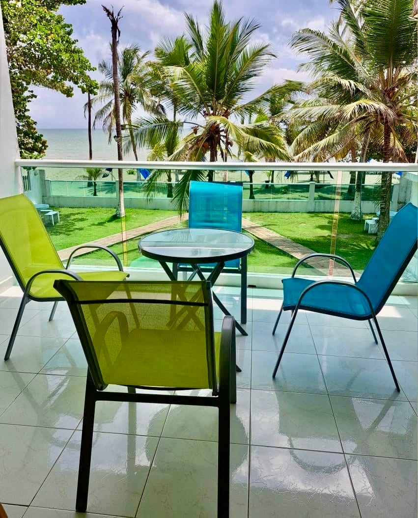 Super cool apartment in small beach front complex of just 6 properties, located just 7 minutes from coveñas center and in walking distance to beach bars / restaurants and some shops. The area is perfect for couples, families or friends with a relaxed atmosphere perfect for sunset lovers, walks along the beautiful beaches and generally relaxing The apartment has a spacious private terrace, with hammocks, and furniture, sea and garden veiws, just 30 seconds walk to the sea through the garden.