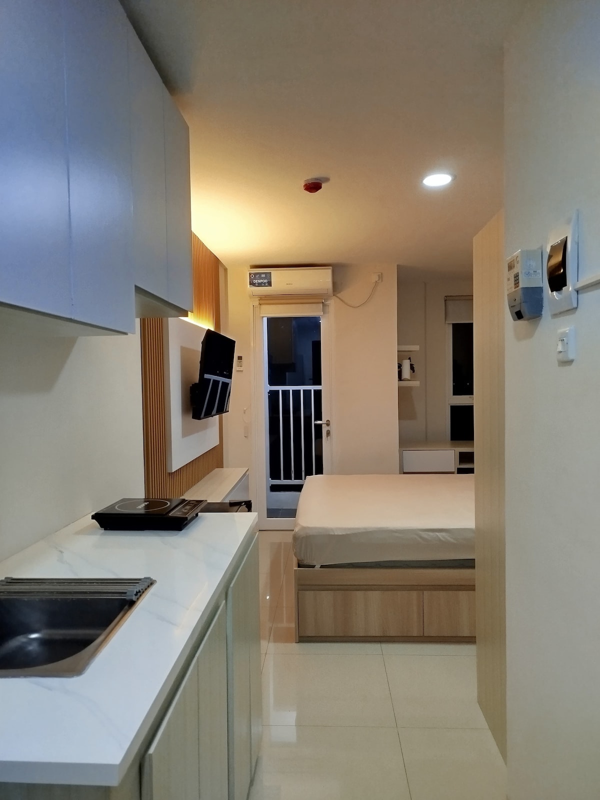 This studio apartnment at Chicago Bintaro Transpark in prime location, only 350 m away to Bintaro CBD. Step into our spacious 24m2 studio, equipped with a sleek full kitchen and a 40-inch smart TV for your entertainment needs as well as internet, netflix and local tv channels provided. Easy access to bustling shopping mall, diverse food court, grocery stores and exercise at the swimming pool and gym Bookings are not allowed for third parties. Alternative unit: airbnb.com/h/bintarohygge