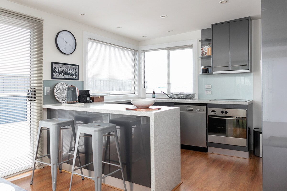 Separate from the main house our studio has a double bedroom, full kitchen, living space, bathroom & laundry. The studio looks out over our garden and courtyard, which can be used by guests. Please note our garden is also enjoyed by our young children. Located a short 10 minute drive from the Spirit of Tasmania Ferry, perfect for those early morning sails or late arrivals. A short walk to the Bluff area (15 mins) or to shops and cafes including Hill Street Grocer (10 mins).