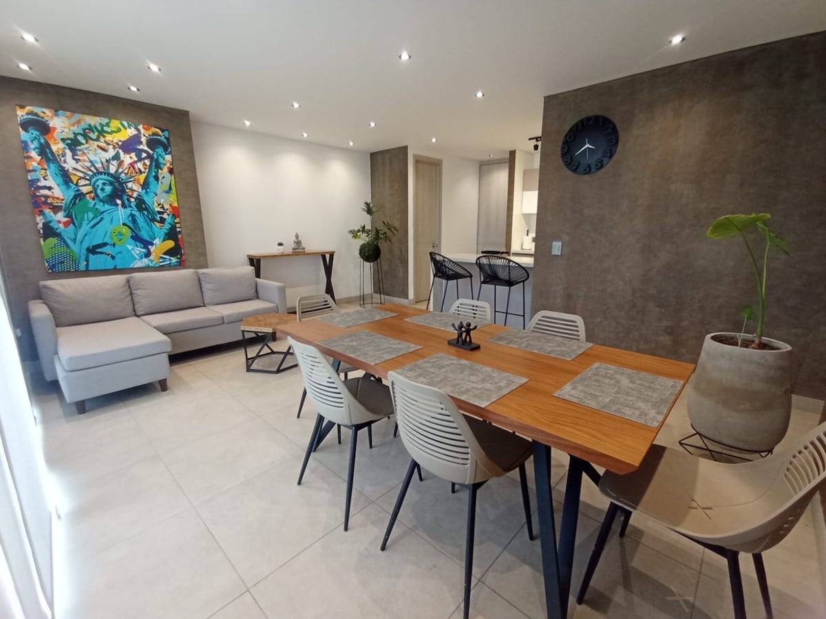 Apartment on the 8th floor, with an incredible balcony and view of Cali. The apartment consists of: master bedroom with king size bed, private bathroom and dressing room. Auxiliary room with 2 single beds, (could be put together) and AC. 300 megabyte Wi-Fi service. Very well equipped kitchen, full social bathroom, living room, dining room and 2 smart TVs with Netflix access The building has 24/7 private security, two elevators, a covered garage, a gym, a laundry room, a coworking space, and a swimming pool.