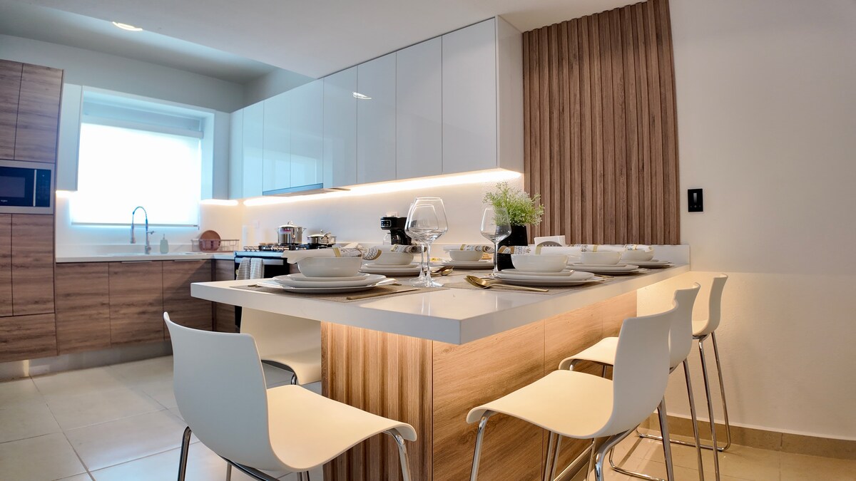 APARTMENT B - Beige house 🏡 ideal if you come to the CONSULATE, work or visit. Clean, private and spacious. Equipped kitchen, heating, A/C, WiFi. Full apartment (not shared). A quiet area. 📍 10-15 min from the US CONSULATE and 10 minutes from the AIRPORT. Pharmacy, Oxxo and food nearby. 🚗 FREE parking (shared). LET US KNOW if you bring a car 🍼 Playpen (Crib) chair and bathtub for baby at NO COST ID required, Only registered guests can enter or it will be canceled 🚫NO VISITORS, NO SMOKING Self check-in