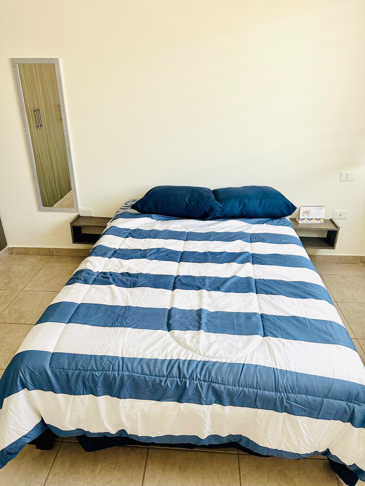 Disfruta de una estancia cómoda, funcional y tranquila en esta recámara privada ubicada dentro de una casa bien equipada, ideal para personas viajeras, profesionistas, estudiantes de posgrado o quienes requieren un espacio práctico y acogedor cerca del aeropuerto. La recámara cuenta con: Cama cómoda Baño privado completo Clóset amplio Espacio para escribir o trabajar Aire acondicionado para mayor confort Buró funcional Ventana con persiana, que permite regular la entrada de luz natural