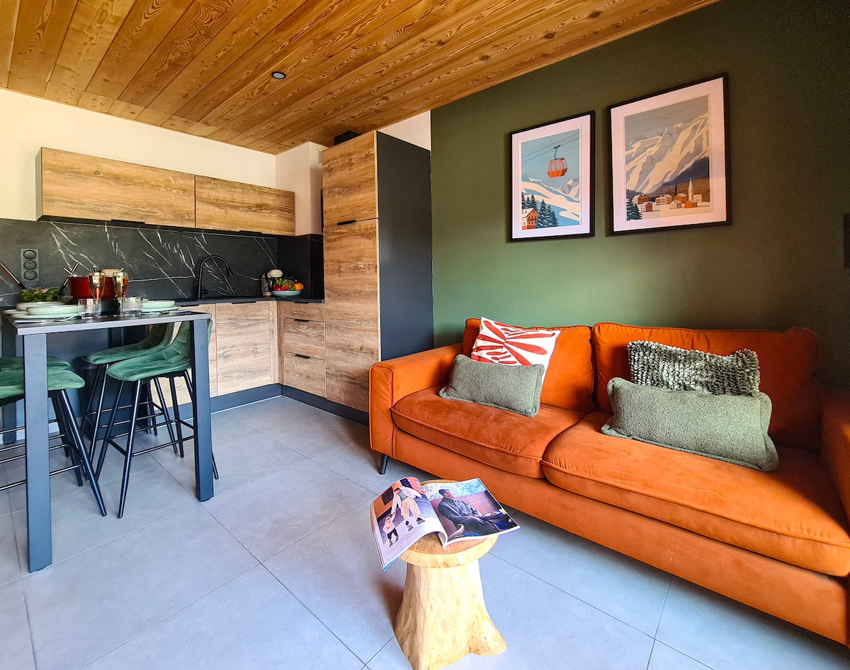 Le Cocon Chafferlin, charming studio located in St Chaffrey in the Serre Chevalier resort with magnificent views of the Luc Alphand slope. It has a great location and is a 5-minute walk from the shops and the start of the slopes. (Ski shuttle also available at the bottom of the residence) Completely renovated in 2021 in a warm mountain style and equipped with everything you need to make you feel right at home.