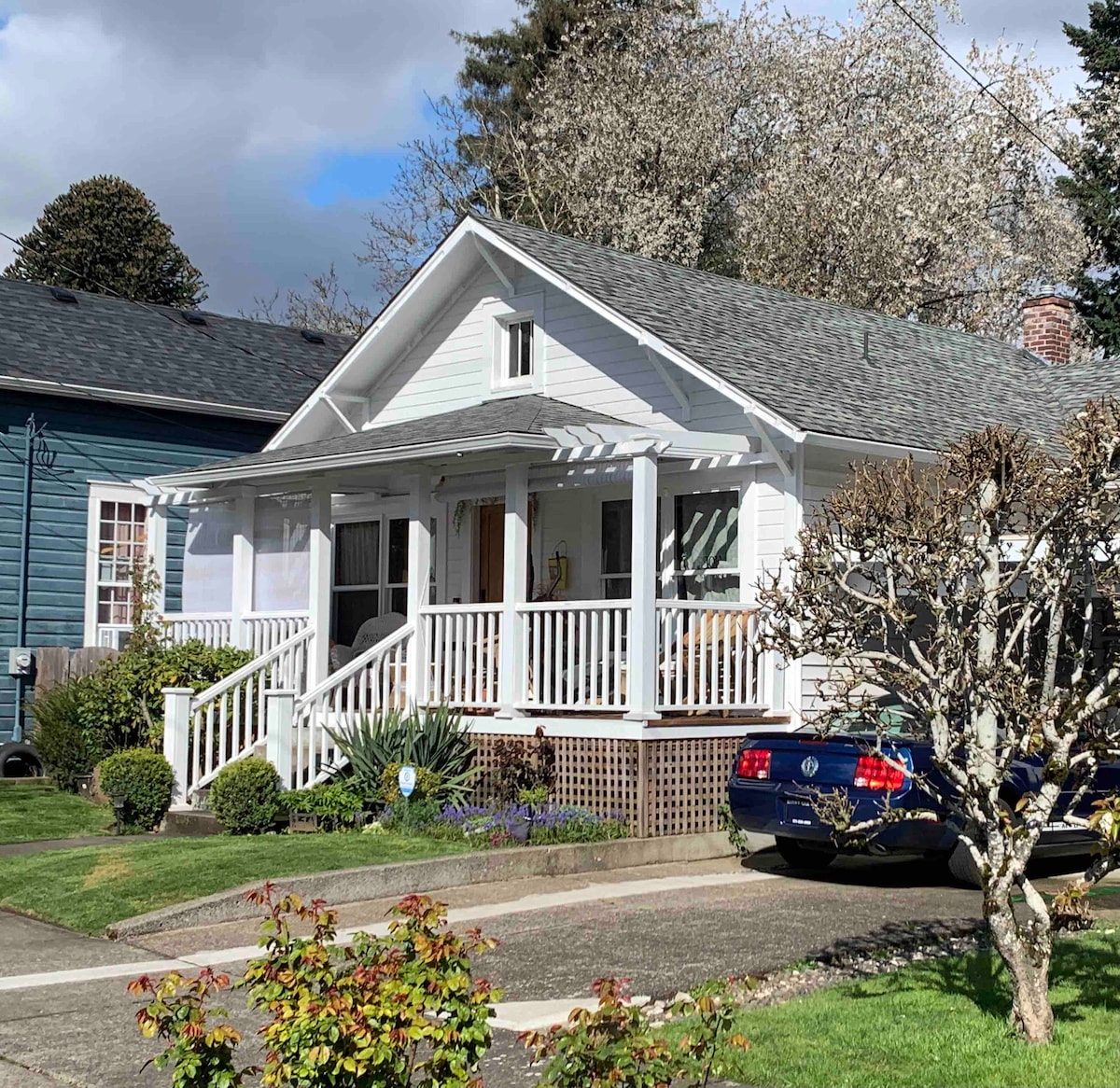 We're an upscale, private, guesthouse in central PDX - like a private hotel, but better. Free food/drinks/snacks – crazy amenities. There’s a cook's kitchen, private courtyard, king & queen, bath w/shower, keypad, free parking, a/c and w/d. Basically a private, well-stocked, serene little house on a busy street. Inside stairs are steep! ~650 sq. ft. total. This is a *nice* neighborhood, and we prioritize cleanliness, privacy, and amenities. Dogs & kids are welcome, and so is quiet.