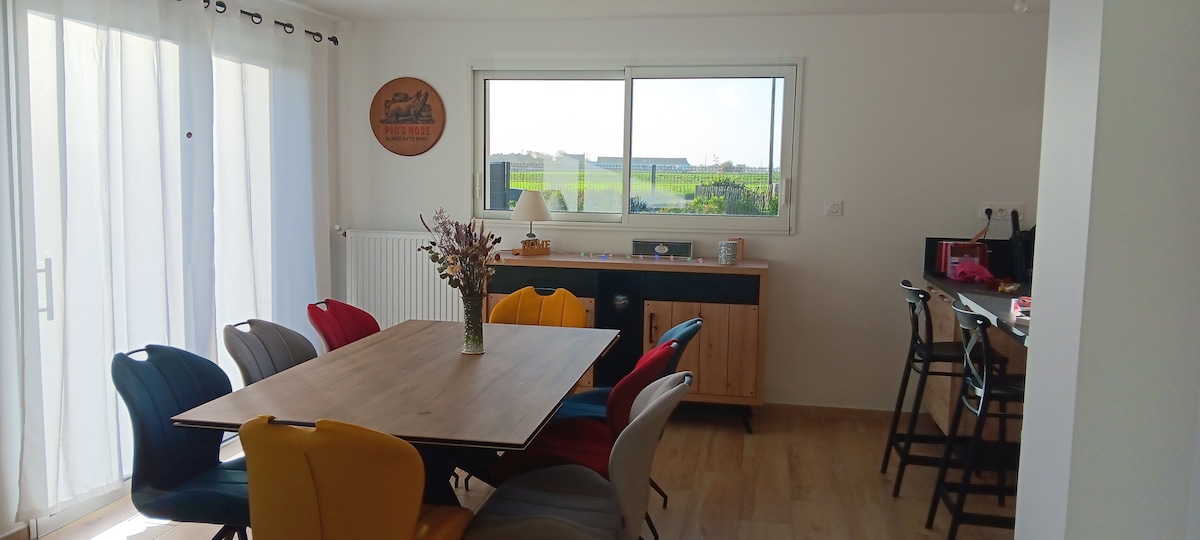 Ideal vacation in this independent house 400 m from the beautiful Amiets beach in Cléder. The house has all the comforts for a time with family or friends. The terrace is spacious and will allow you to make the most of the sun throughout the day. Coastal trails, beautiful beaches and sunsets just steps from the house. The town of Roscoff and its many restaurants and activities are 15 minutes from the house. Photos: Mathilde LEVAVASSEUR