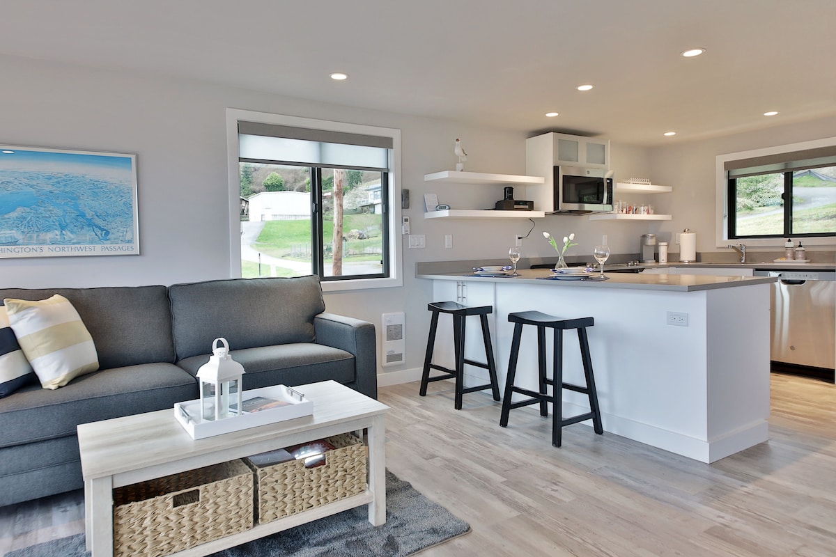 Leave all your cares behind and replenish in this relaxing stylish space. This island getaway near Double Bluff Beach boasts 2 spacious bedrooms, 1 bath, and was completely remodeled in 2022. This is a getaway for those who wish to reset and relax while enjoying all that Whidbey Island has to offer. Sip on a local coffee while gazing at 180 degree views of Useless Bay, Mt. Rainier, and quaint farms. Walk to Deer Lagoon to observe the over 170 species of birds taking up residence.