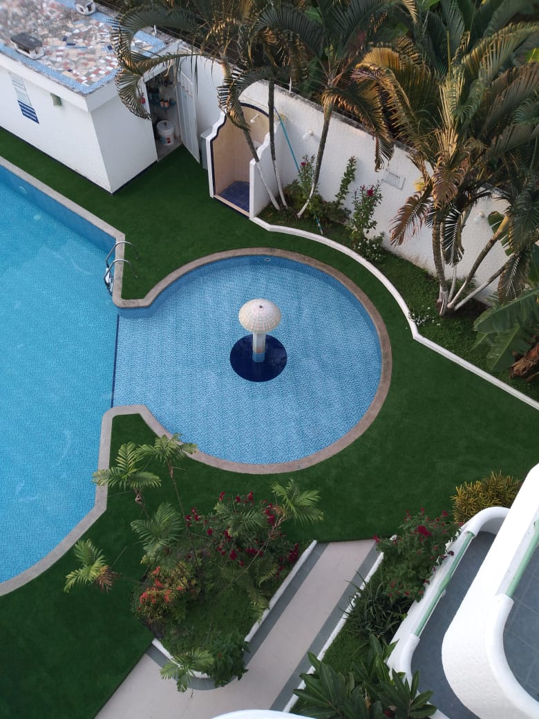 Fontainebleau is the best building on Tonsupa Beach in the Pacific Club sector. It has resort facilities with a private beach, tennis court, synthetic soccer field, beach volleyball, 2 swimming pools for adults and children, and a covered garage. The ocean view apartment has a large independent terrace, 2 bedrooms, sofa bed, kitchen, microwave, refrigerator, air conditioning, full kitchen utensils, bed linens, toilet paper, cable, towels, shampoo, Wi-Fi
