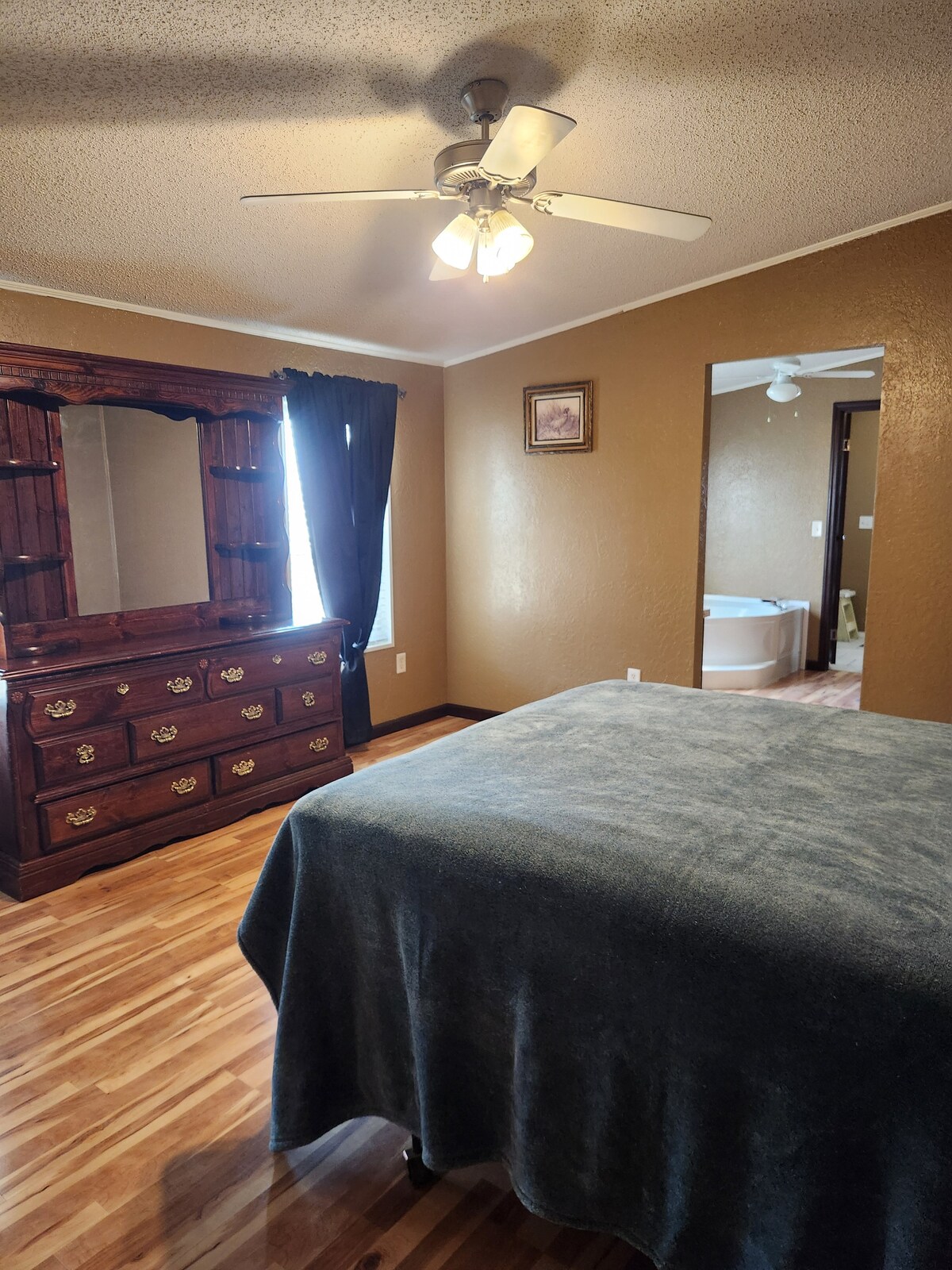 *Message for dates* Executive style home like you've never seen offered as a vacation rental in Big Spring TX. Fully remodeled and designed to feel fresh, modern, and light, you'll love the effortlessly cool vibe throughout the home. The large master bedroom is a suite unto itself, taking up a quarter of the house. A private bathroom joins it with a spacious multi-head rainfall shower, a luxurious claw foot tub, and large double sink vanity, and mounted TV to enjoy while soaking the day away.