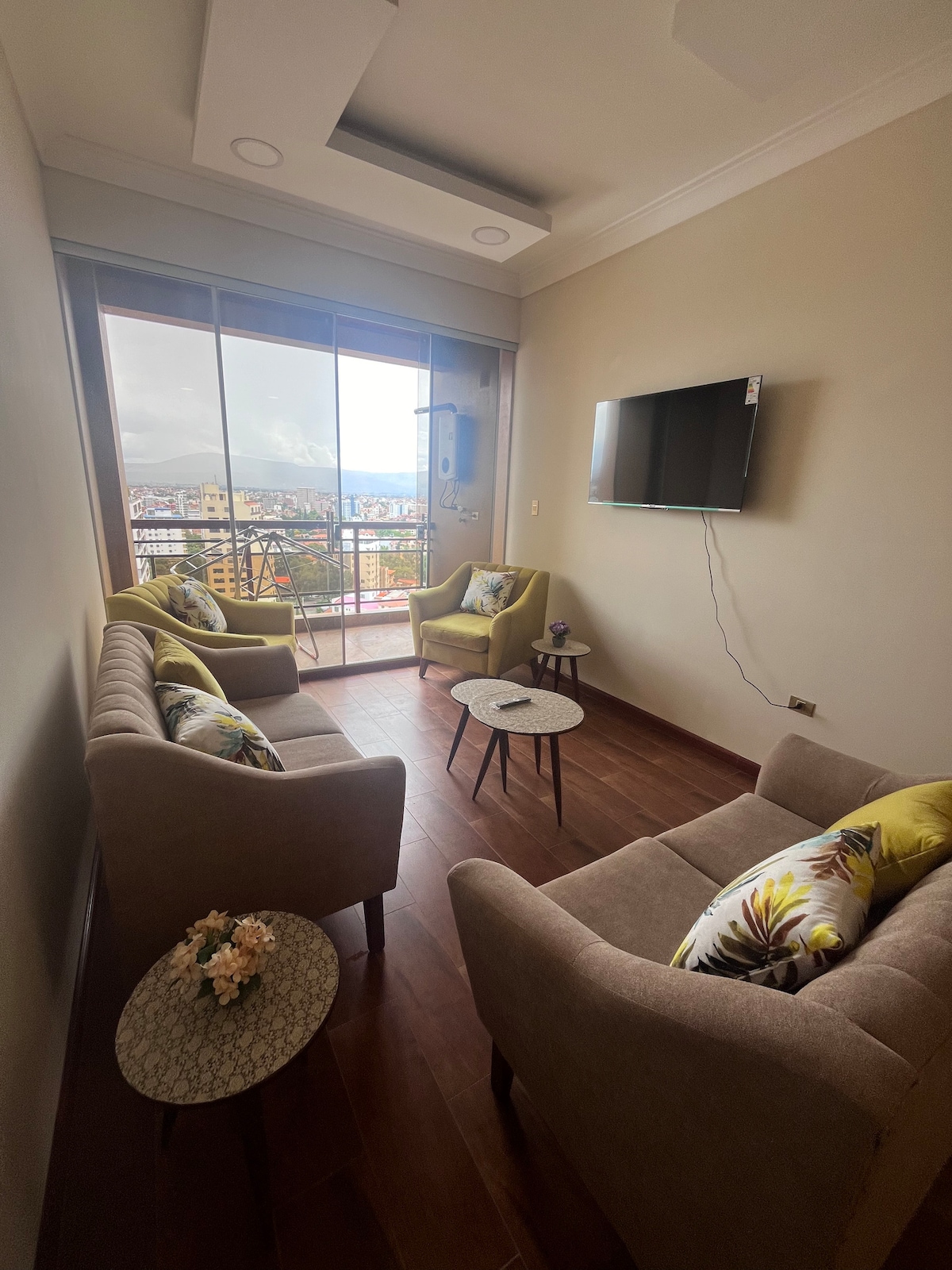 I welcome you to the luxury, comfort and cleanliness of this apartment in the best location of Cochabamba. You will be in the best area for business or family vacation trips. - 80* inch Smart Tv -Nearby Traditional Bolivian markets. -Nearby Restaurants. -Infinity Pool -Sofa Bed. -Amazing view of the city. -Washing Machine