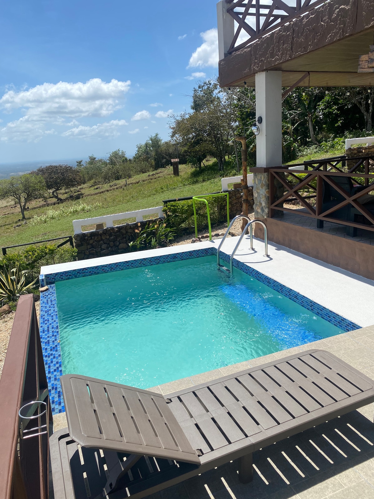 Rustic cabin with uninterrupted views of the El Copé mountains. The cabin has a small kitchen, a living room with TV, a dining area, and we have 5 hammocks on the terrace overlooking the mountains. Barbecue area; The cabin is located on 1 hectare of land surrounded by pine trees and a very pleasant climate. Averaging 25° to 20°. We don't have a pool, but there are rivers, waterfalls, mountains, and trails within 20 minutes that you can visit with a local guide.