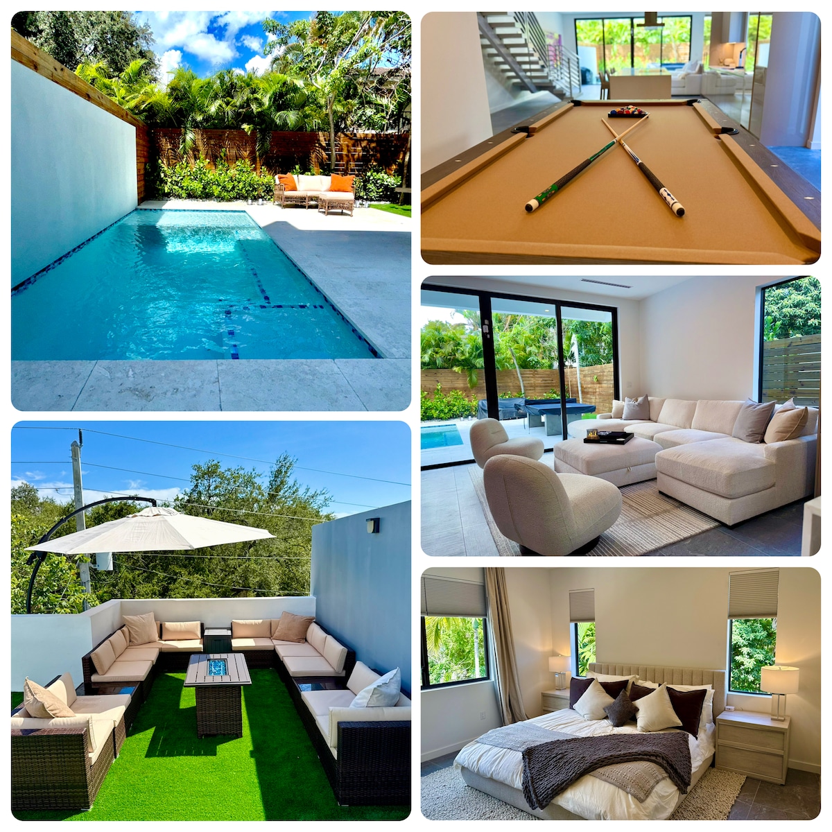 -Less than 5 minutes to the heart of Brickell (closest you can get with a house) -Easy access to South Beach, Wynwood, Midtown, Coral Gables (all within 10-15 minutes) -Newly renovated with stylish, high-end finishes. Notably two rooms have their own bathrooms, so its a comfortable setup for large groups. -Backyard pool and patio area feels like an oasis. Great place to hangout with friends, grill, or just relax and enjoy the greenery, the sun during the day, and the stars at night.