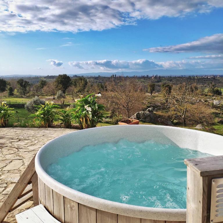 Ideal for a romantic getaway, this playful safari tent features a private jacuzzi, large double bed, dining area, private bathroom, and balcony. Bed linens, towels, and free toiletries are provided. Heaters are available when needed. Guest can use all amenities including 3 swimming pools, jacuzzis, a restaurant and bar, sun loungers and parasols, a BBQ area, farm animals, a playground, panoramic mountain views, and free guest parking. Breakfast is not included but can be booked in addition.