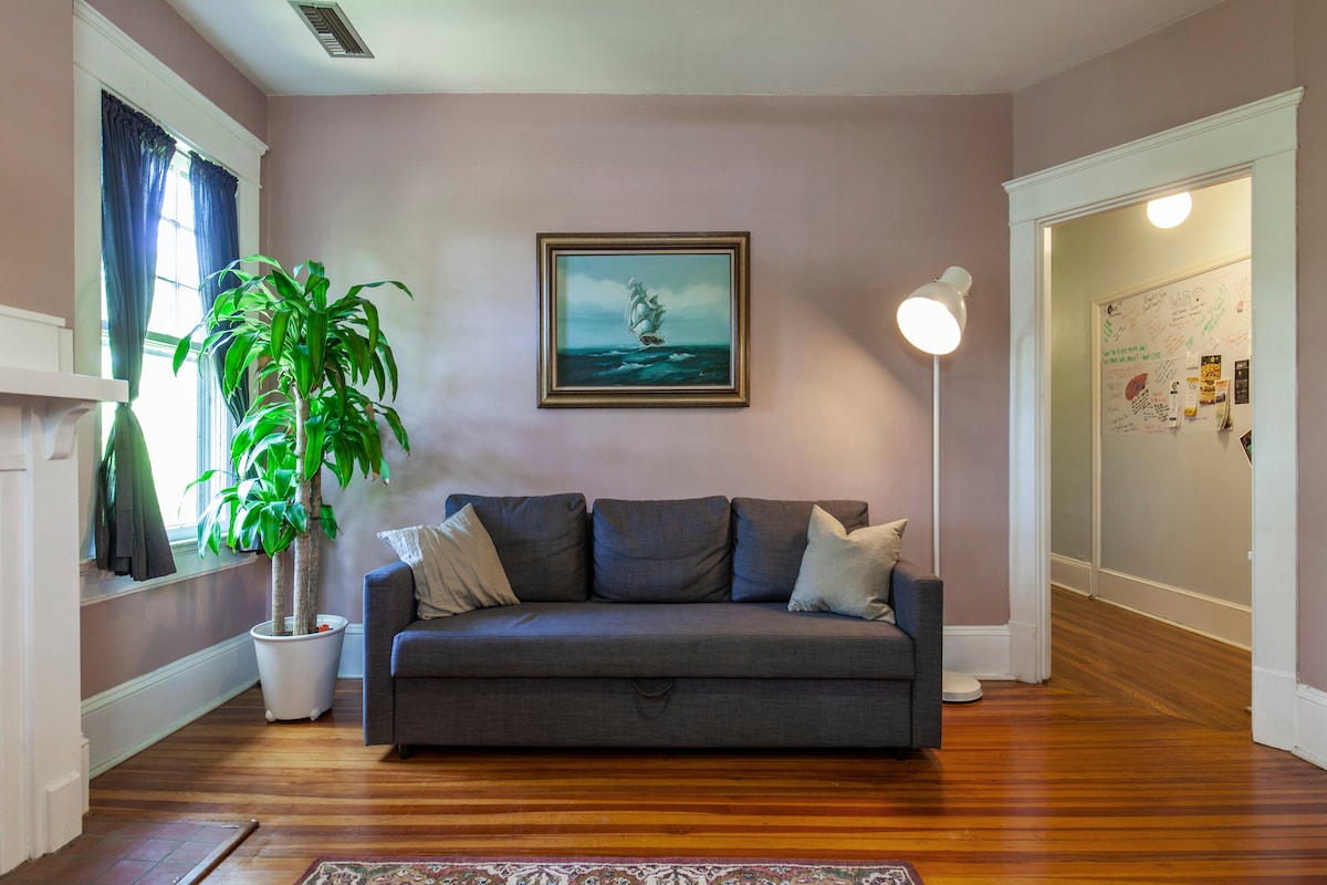 Fully equipped private apartment within a historic Colonial Craftsman house. If you're a group of two and need to use the second bed, please let me know in advance so that I can have it made before you arrive. Atlanta Airport, Georgia International Convention Center (GICC), Mercedes-Benz Stadium, Georgia Aquarium, Coca-Cola, etc. are just minutes away.