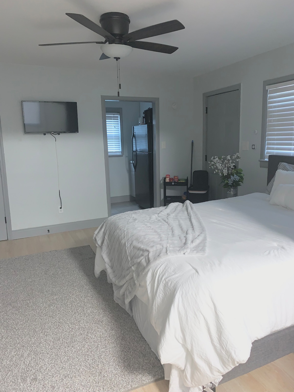 Great for Couples, Business Travelers, Tourist Traveling, Solo Adventurers, Relocating, Longer Stays. This is a DOWNSTAIRS studio is in an Older Neighborhood. You will see some homes that are renovated and some homes that are not. Equipped with: ✔️Self Check In via Lockbox ➢ Queen bed with pillow top ➢ Comfortably accommodates up to two people. Fully functional kitchen with pots, pans, dishes, stove, fridge. ➢ High-speed WIFI ➢ Smart TV to access your Netflix and Amazon Prime accounts