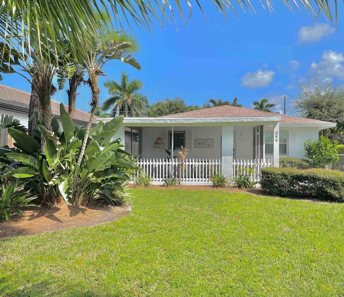 Located less than One Mile from the Beach in the Center of the City Hustle, Open Spaces & Bright Beachy Vibes gently remind you of why you came! French Doors in both Bdrms open to a Beautiful Screened Lanai with Outdoor Dining & BBQ Overlook a Little "Beach". Master Bdrm has a King Bed Ensuite Bathroom w/Shower; additional Guest Bdrm has 2-Twins or King Bed and Hall Guest Bathroom. This completely renovated cottage shares 1.62 acres with an adjacent house and was designed for absolute privacy.
