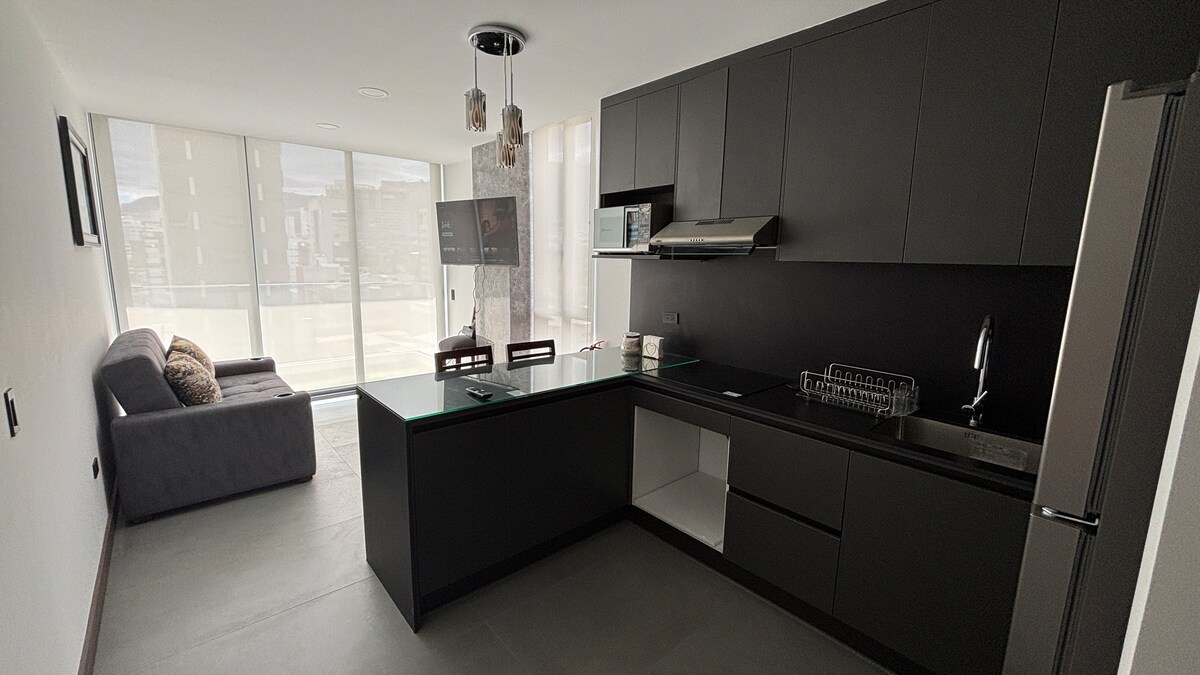 Suite completa, recién remodelada, ubicada en el exclusivo sector de La Carolina. Cuenta con cocina amplia con mesón estilo americano, sala con Smart TV y dos sofá camas, dormitorio master con cama de 2 plazas, Smart Tv y baño privado. Ubicada en el sexto piso número 604, con ascensor, portero y seguridad 24/7, a solo una cuadra del Metro, cerca de centros comerciales, restaurantes y el Parque La Carolina. Ideal para hasta 4 huéspedes. Pet friendly. Parqueadero disponible con costo adicional.