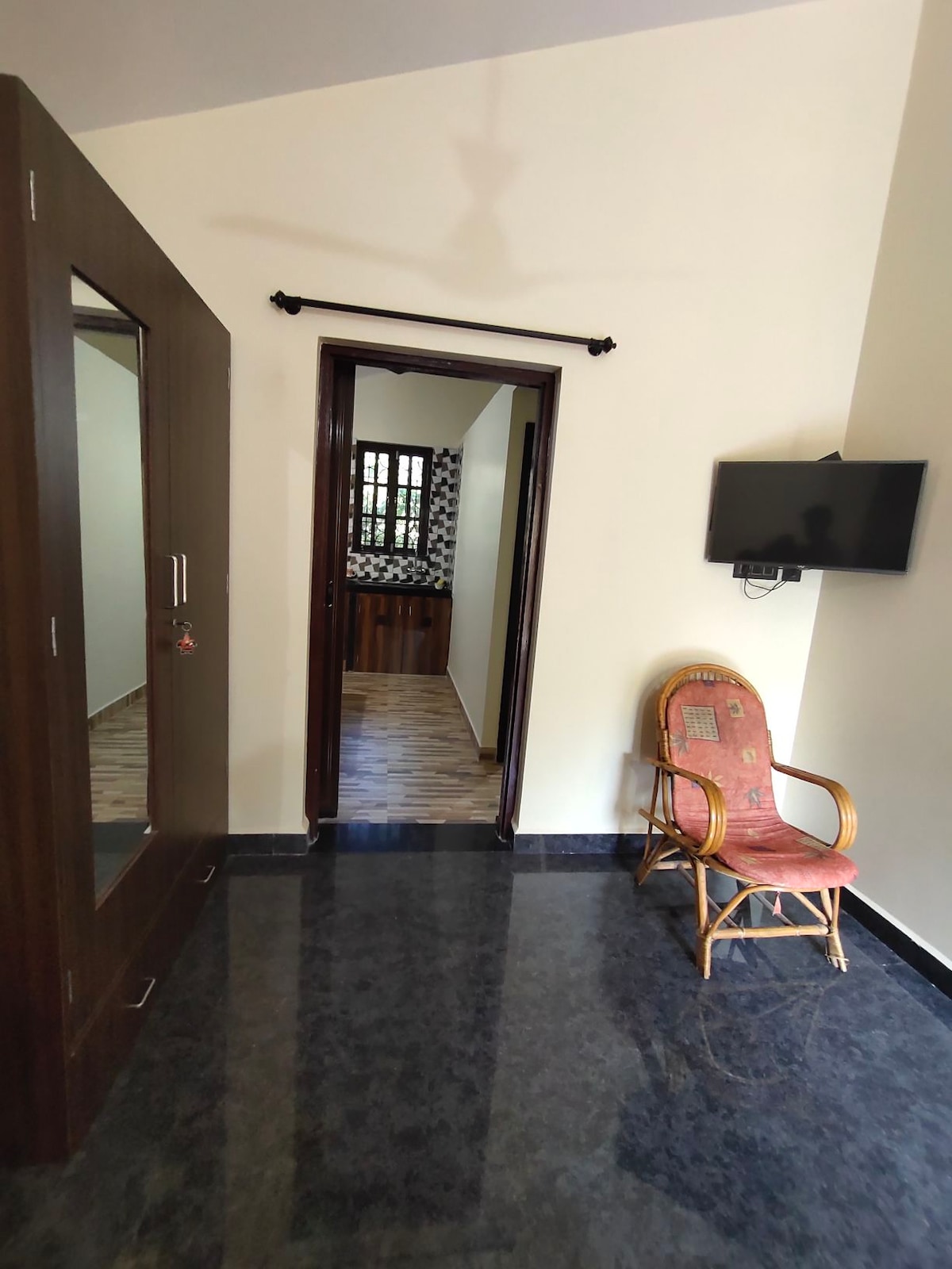 This tastefully decorated Studio Villa nestled in Cavelossim features a large living room with a double bed and a kitchen. The studio room is outfitted with all the appliances you need including a fridge, TV, microwave and air-conditioning with back up power. A cozy sit-out is also there outside to enjoy your evening coffee with a book. There are sun beds on the lawn for endless reading and sunbathing. We have 2 swimming pools in the community that you can use.