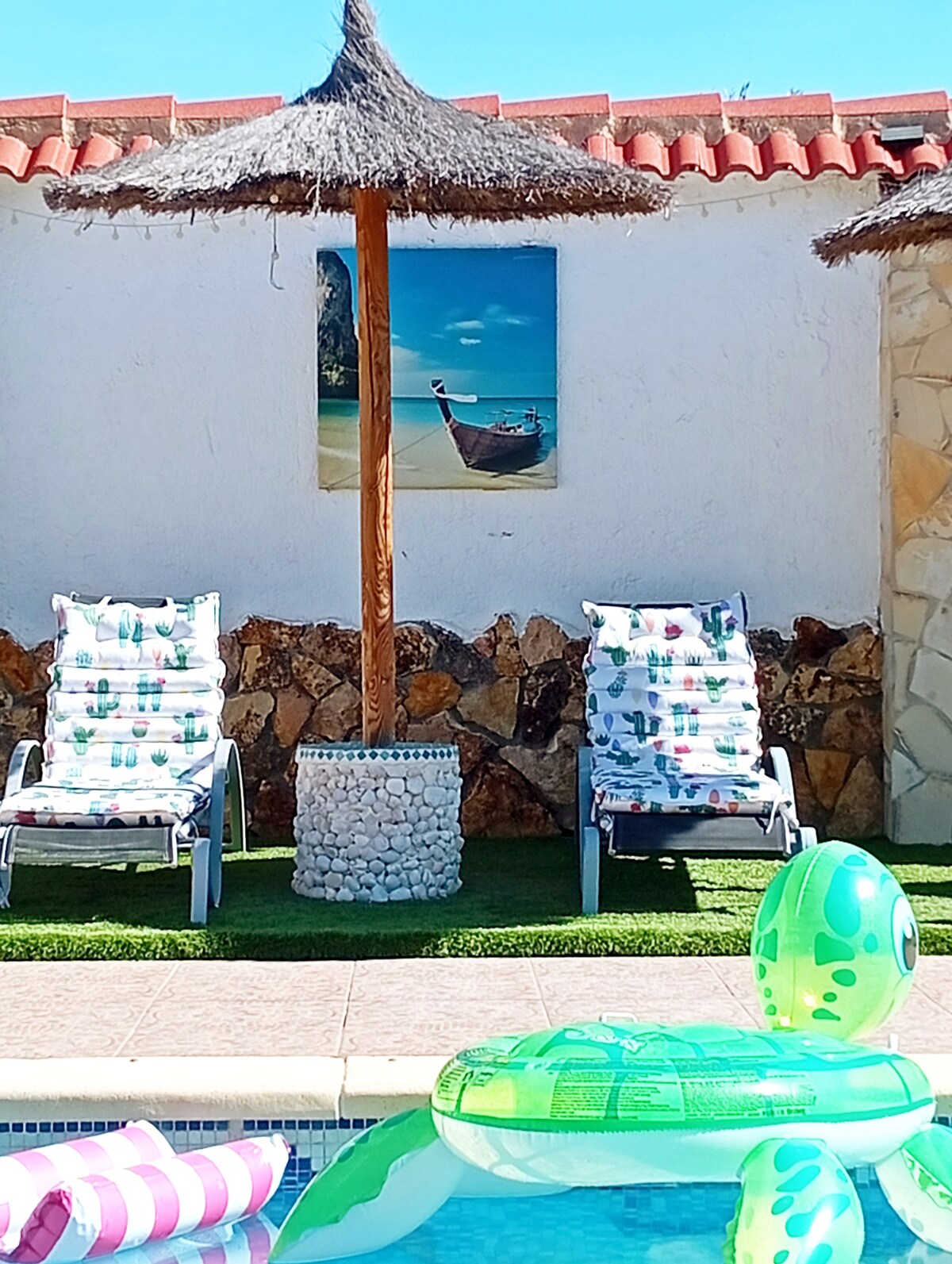 Welcome to our charming home in La Parata! - Serene living room with chic boho decor and stunning views. - Cozy atmosphere perfect for relaxation and conversation. - Fully equipped kitchen for all your culinary needs. - Expansive terrace with sun loungers and BBQ grill, ideal for al fresco dining. - Breathtaking views of the La Parata mountains. - Nearby attractions include hiking trails for adventure seekers. - Enjoy complete privacy with full access to the entire house.