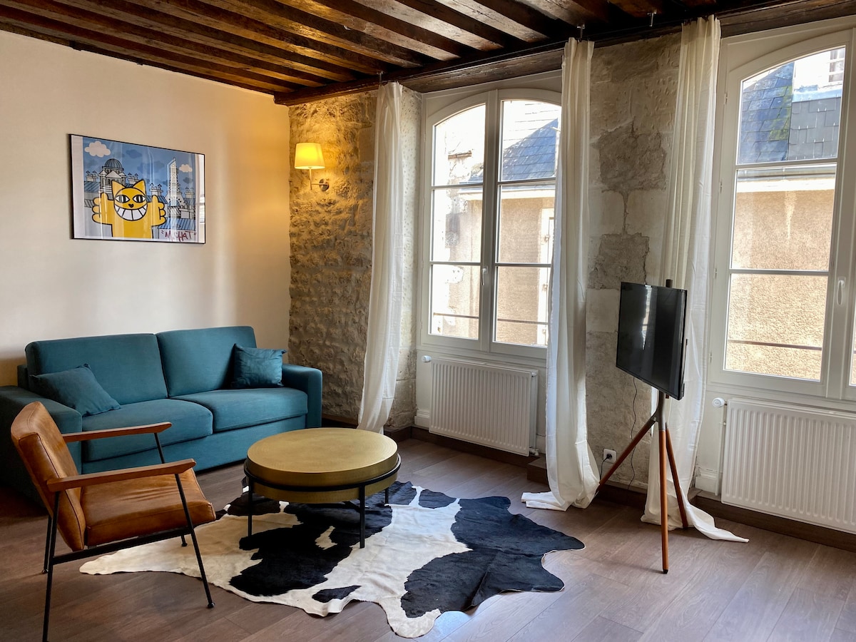 Ideally located on a very quiet pedestrian street in the historic center of Orleans. Nestled on the second floor without elevator access, offering views of the Cathedral towers and half-timbered houses. The charm of the old sometimes has its small drawbacks, the sound insulation is not perfect and it is possible to hear the sounds of the daily life of the neighbors.