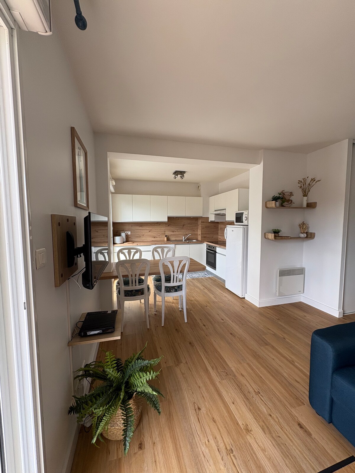Let yourself be seduced by this charming 50 m² apartment, located between the beach and the port, for a unique getaway! With its bay window opening directly onto the shore, you will enjoy an exceptional setting where the sea and port life blend harmoniously. • Breathtaking views: From the living room, admire the sunset. High tide show. Perfect for a couple wishing to be in the heart of the village. 150 meters from the port restaurants and 50 meters from the local grocery store.