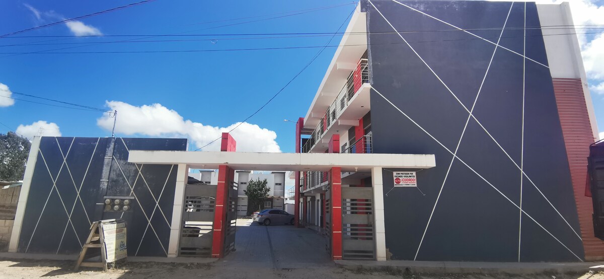 Cozy and comfortable apartment, located near Plaza Las Flores (inside the square you can find Walmart). We are located one block from the city's main boulevard where you can find public transportation to go downtown. We have 2 queen size beds fully equipped with sheets, pillows, and cushions. Ideal for a stay of 2 to 4 people in the room. Inside the room you can find: minibar, towels, coffee maker, pans, cooking utensils, iron, hooks. The room also has a space to wash and hang clothes. The bathroom area has hot water, soap and toilet paper. We have space to store cars and WIFI throughout the building. We are a cozy and comfortable apartment, it is located near the Plaza de las Flores (inside you can find a Walmart) we are located one block away from the main boulevard of the city where you can find public transport to go downtown. We have 2 double beds fully equipped with sheets, pillows, and cushions. Ideal for a stay of 2 people up to 4 people in the room. Inside the room you can find: minibar, towels, coffee maker, pans, cooking utensils, iron, and hangers. The room also has a space to wash and hang clothes. The bathroom area has hot water, soap, and toilet paper. You have a space for parking the car and Wi-Fi access.