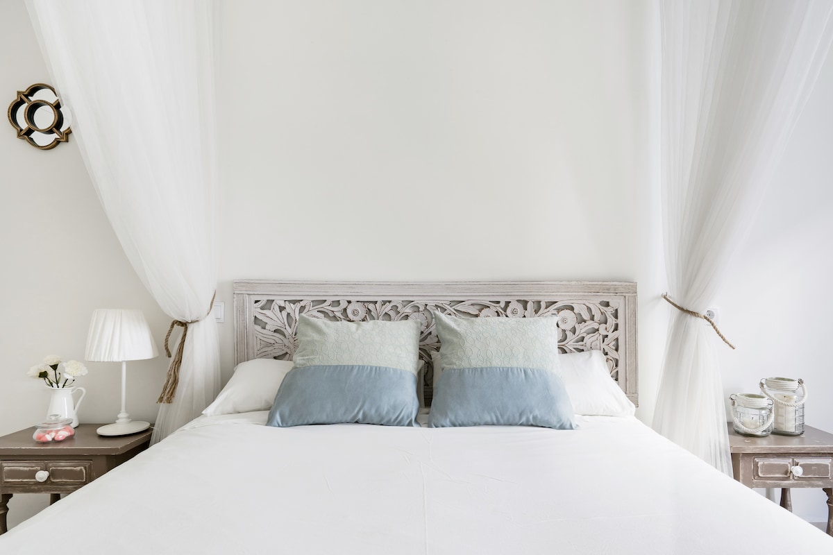 I welcome you to my home, a charming apartament ideal for 4 people and the same historic center but with the advantage of being one of the quietest areas, without noise and nature. 1 minute from Picasso´s Birthplace and Antonio Banderas´house, it has all the comforts. I am malagueña and I would love to advise you so that you can have a wonderful stay. Welcome to Malaga- City of Paradise.