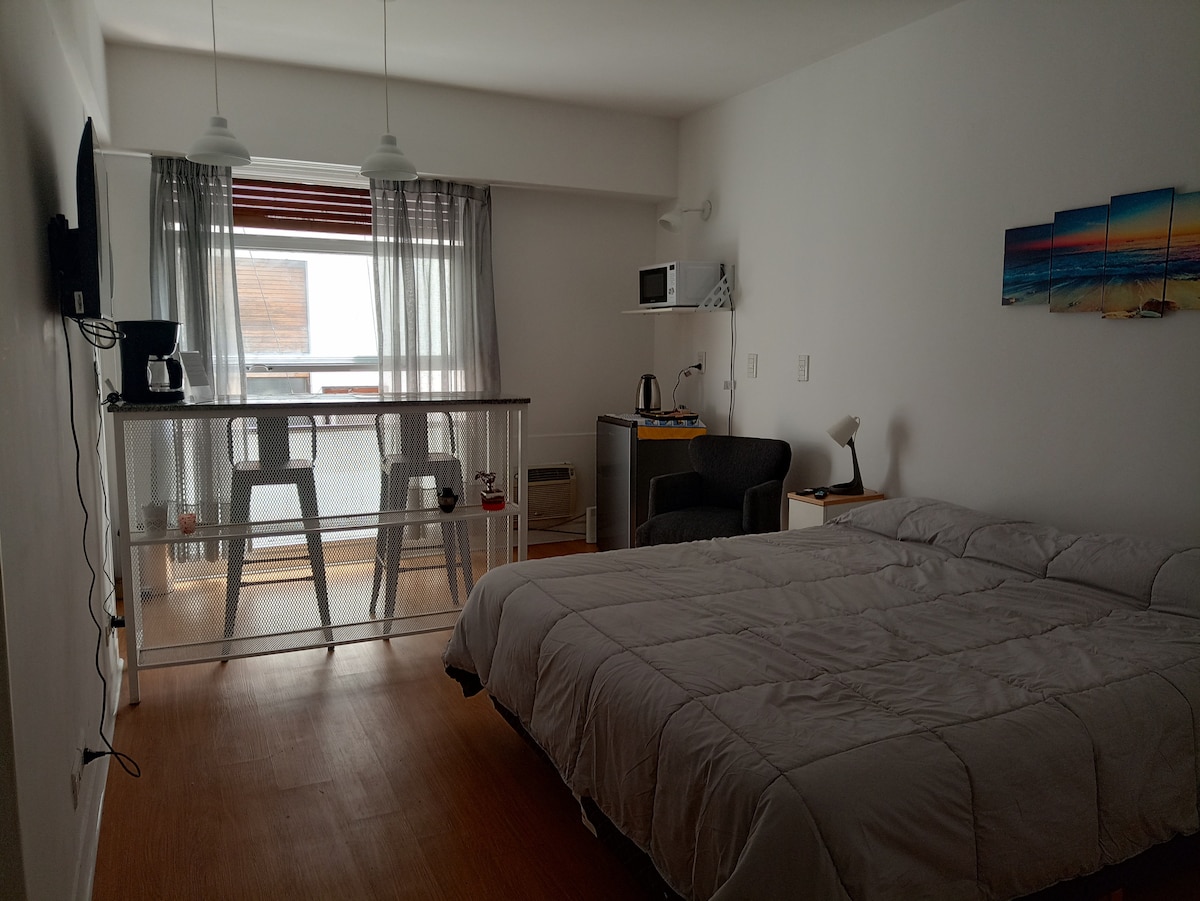 Olvídate de las preocupaciones en este espacio amplio y luminoso, ubicado en una zona residencial con conexiones directas al corazón de la ciudad. Relájate en su dormitorio con cama de dos plazas mirando Netflix en un Smart TV. Disfruta de una gran sala de estar con un sillón cama, ideal 3er huésped, split frío/calor y Wi-Fi. Prepárate algo rico y saludable en su amplia cocina comedor como si estuvieras en tu casa. También tendrás tu baño completo con ducha, inodoro y bidet. Te esperamos!