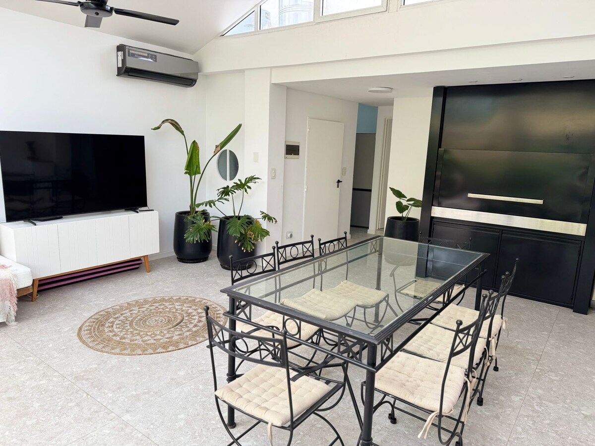 Bright and spacious art house in Caballito with large Jacuzzi terrace and private barbecue. We only accept families. The booking includes a mandatory daily cleaning. That is, someone from our team will come at some point during the day to clean the jacuzzi, wash towels and bed linen and go over the floors. Check in and out in person at the times detailed, otherwise there is an additional cost. Read and respect the house rules. Thank you!