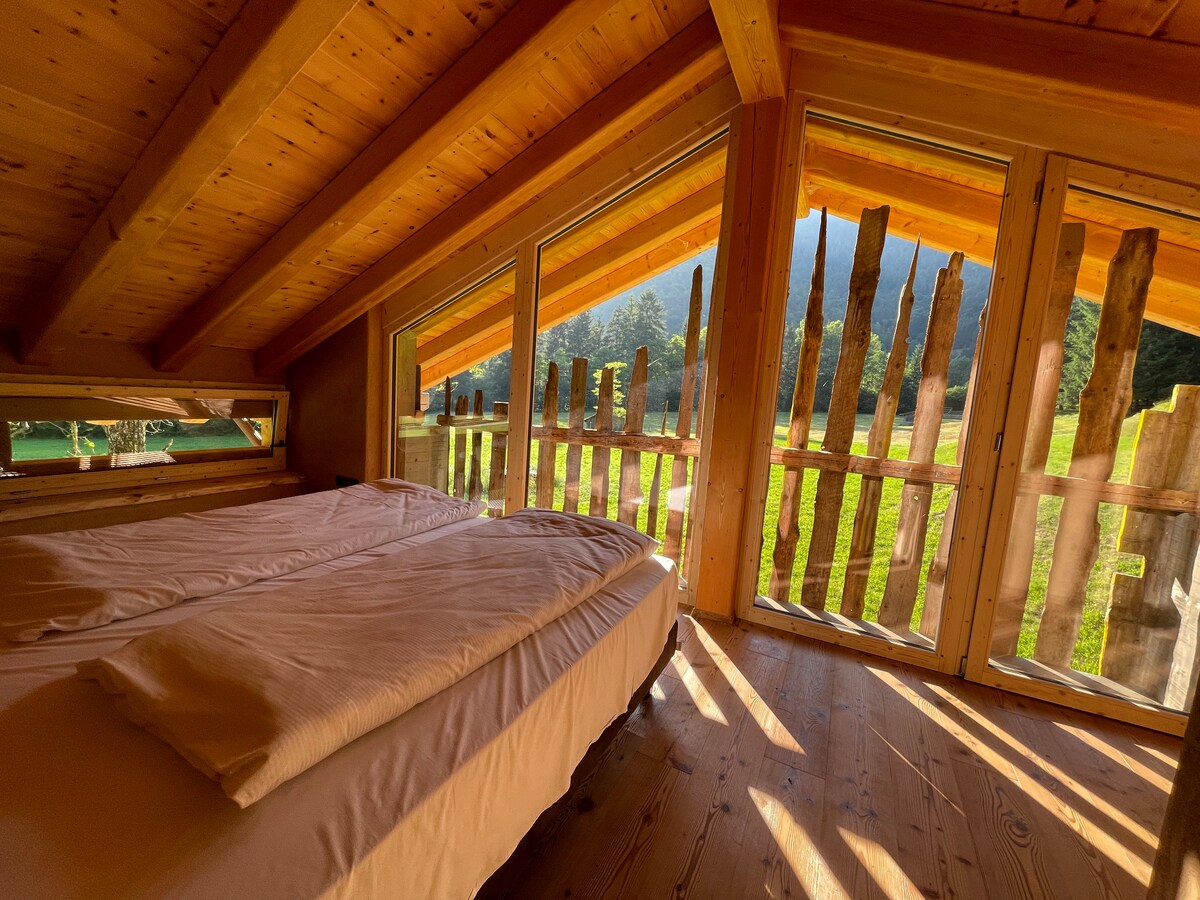 there is a new experience hidden between beautiful lakes and the Dolomites. In Concei valley, the green area of Lake Garda South Tyrol, is born a chalet into the Nature made by Nature. All is thought for being bio-safe. The walls are made of clay, The wood is natural. Part of the hayloft has been left as before the renovation. there you can live a rare authentic time.