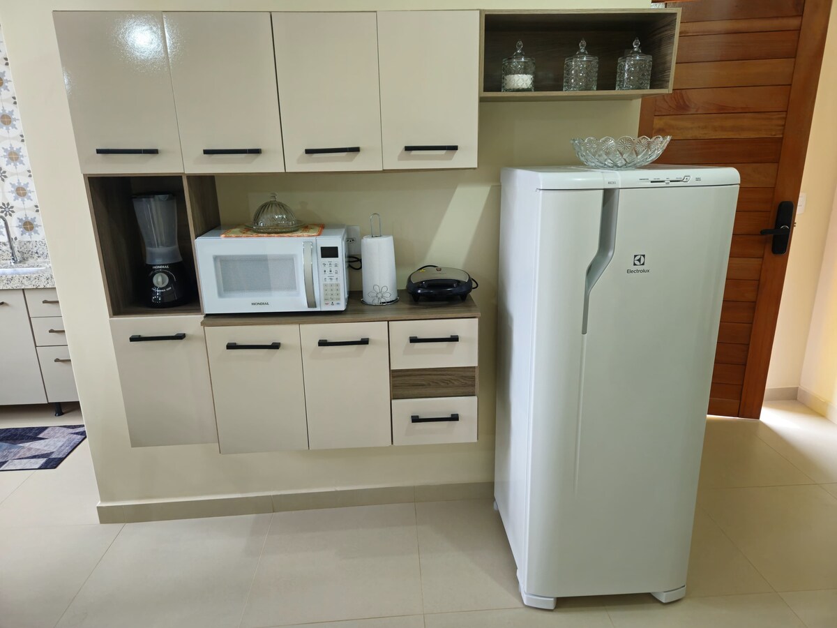 Technological and Romantic Chalet At an altitude of 730 meters, amidst the nature and fresh air of the Espírito Santo mountains, the chalet is located on a site just 15 km from Venda Nova do Imigrante and 30 km from the famous Pedra Azul. 🌿 Ideal for couples seeking tranquility, comfort, privacy and a unique romantic experience, the chalet offers the perfect setting for unforgettable moments for two. 🍷 With a complete structure, you can prepare your own meals with your love.