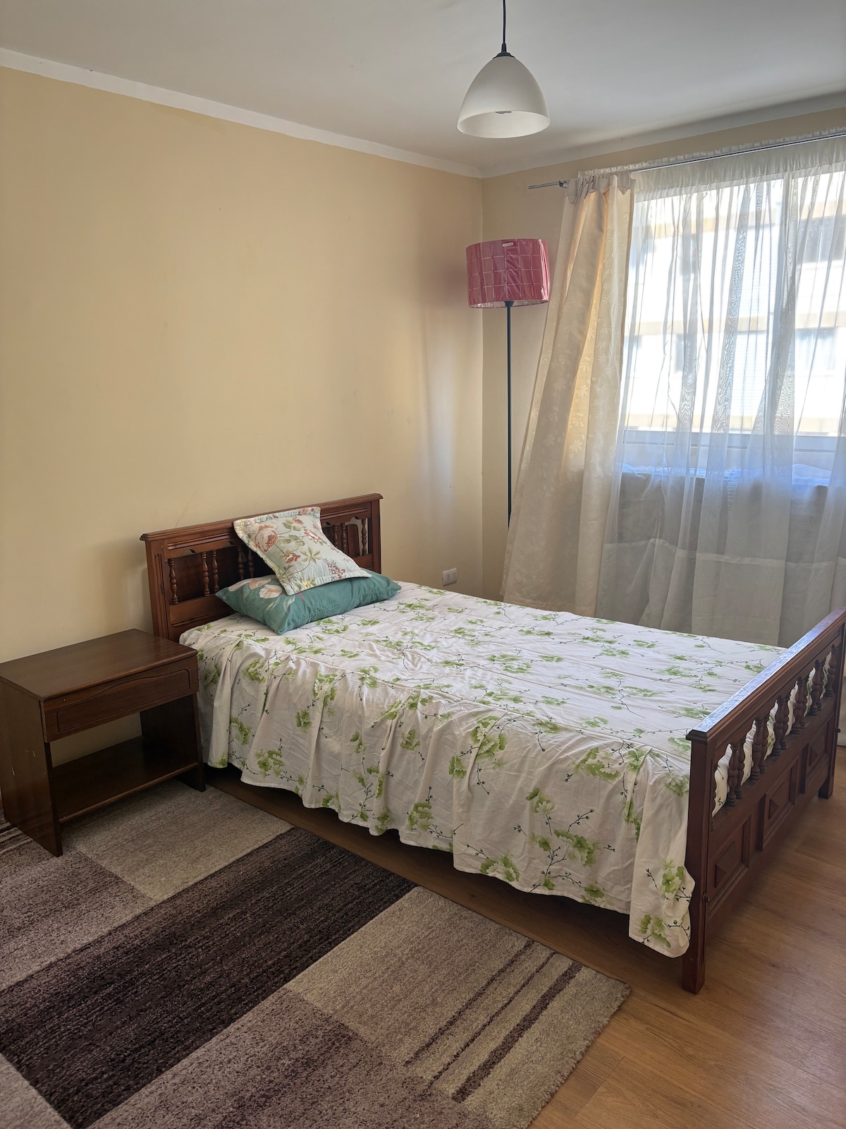 Enjoy a beautiful view of Laguna Redonda, the Biobío River, and the sea. Quiet and simple accommodation located in the commune of Concepción in an area with easy connections to the communes of Talcahuano, San Pedro de la Paz, Chiguayante, Penco, Biotrén, the mall, and the airport. It has laundry in the condominium accessed by paying tokens for the service. A parking lot. Balcony with safety net. Green areas for walking in the natural environment of Laguna Redonda.