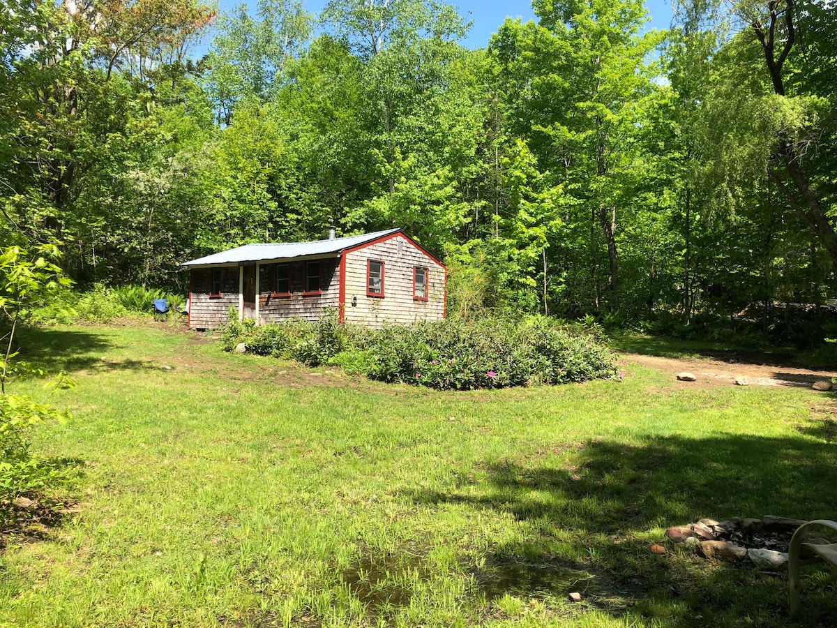 Located atop a ravine, centered on a 24 acre estate, in rural NH, this spot is a cozy retreat in nature with a few present day necessities. Our Cabin is a unique A-frame/Salt box combo that we call the “G-Frame” (designed and built by us). The interior space is open and airy. There are a few large windows allowing nature to be part of your experience indoors. In the cooler months bring firewood for the woodstove and sauna.Plenty of land for outdoor activities.