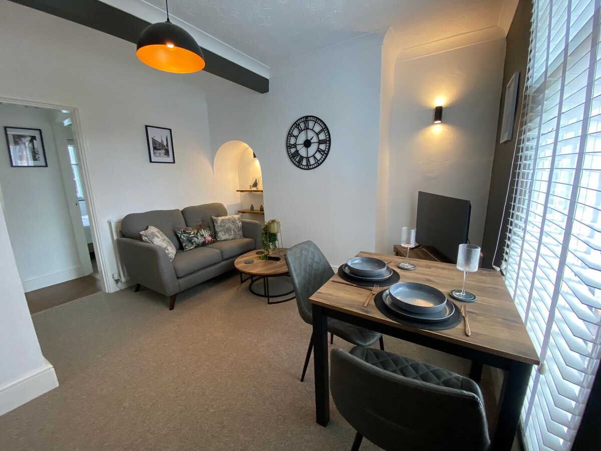 Modern apartment in the heart of Shrewsbury. Close to shops, bars and the scenic river Severn. The perfect place to enjoy the medieval and vibrant town of Shrewsbury. Newly renovated kitchen and bathroom to a premium standard. Relax and unwind in a cosy cellar living space. Fully private (not shared access) courtyard with late afternoon sun. Enjoy a relaxing stay or use as a base for exploring Shrewsbury and surrounding Shropshire area. The accommodation is only accessible via stairs.