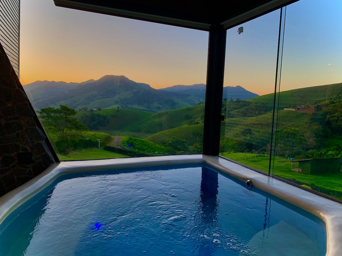 [MEALS NOT INCLUDED] Wake up to the gentle mountain light, sip fresh coffee with endless green views, and reconnect with what truly matters. Here, time flows at nature's pace. Our cabin was designed for couples seeking luxury, privacy, and exclusivity. Located in Santa Rita do Sapucaí, just a few hours from São Paulo, Evergreen blends modern architecture with mountain soul. A one-of-a-kind retreat surrounded by coffee fields and starry skies. Experience the luxury of slowing down.