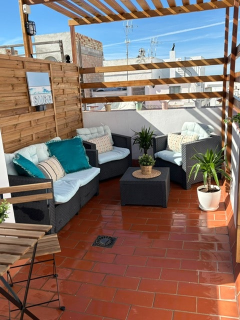 CASAS de PANGËA – where the magic began... In Conil de la Frontera, Hacienda Pangëa awaits you – a relaxed and creative place for those who love community and good vibes. Everyone is welcome on our family farm (3 buildings)! Chill, surf, discover – and enjoy life on the Andalusian coast. For singles, couples or small families. A very special place. Looking forward to seeing you soon! 50 m² house + 30 m² terrace. Double bed + sofa bed 1 adult / or 2 children