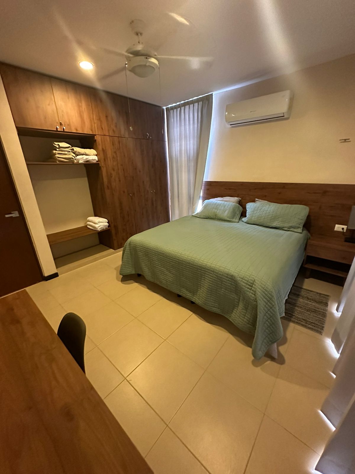 King bed with soft and firm pillows. We have a drinking water filter. water pressurizer. washer dryer. Covered parking for 2 vehicles. Guardhouse. AC in rooms and living room. Rooftop, terrace and pool. Fully equipped kitchen. Internet 100mb and cable TV. Desk and work chair. 5 min by car from the ring road. Tv in rooms and in the living room. Write to us asking for the best local recommendations. If you have no doubt feel free to book now.