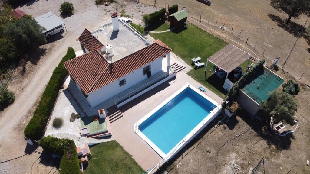 Beautiful country house located on top of a hill, with panoramic views of the Vega del Guadalquivir. Access to it is via a rural road, it is ESSENTIAL to arrive by car. Wood-burning fireplace inside. It has a large pool with platforms and steps, ideal for children to play safely and for adults to lie down. Gas barbecue by the pool and central air conditioning.