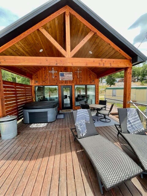 Classroom 6, a former Classroom, is located on lot 6 at Snake Creek Marina. The open concept kitchen, dining & living room along with 2 bedroom, 2 bath is all you need to have FUN! The 2 decks offer such a different environment from each other. The upper deck has a 4 person hot tub, outdoor dining, 36" Blackstone grill, and 2 lounge chairs. The "mandala" deck has a sofa & 2 hand crafted porch swings that helps get you in that relaxed mode. Kick back and relax in this calm, stylish space.