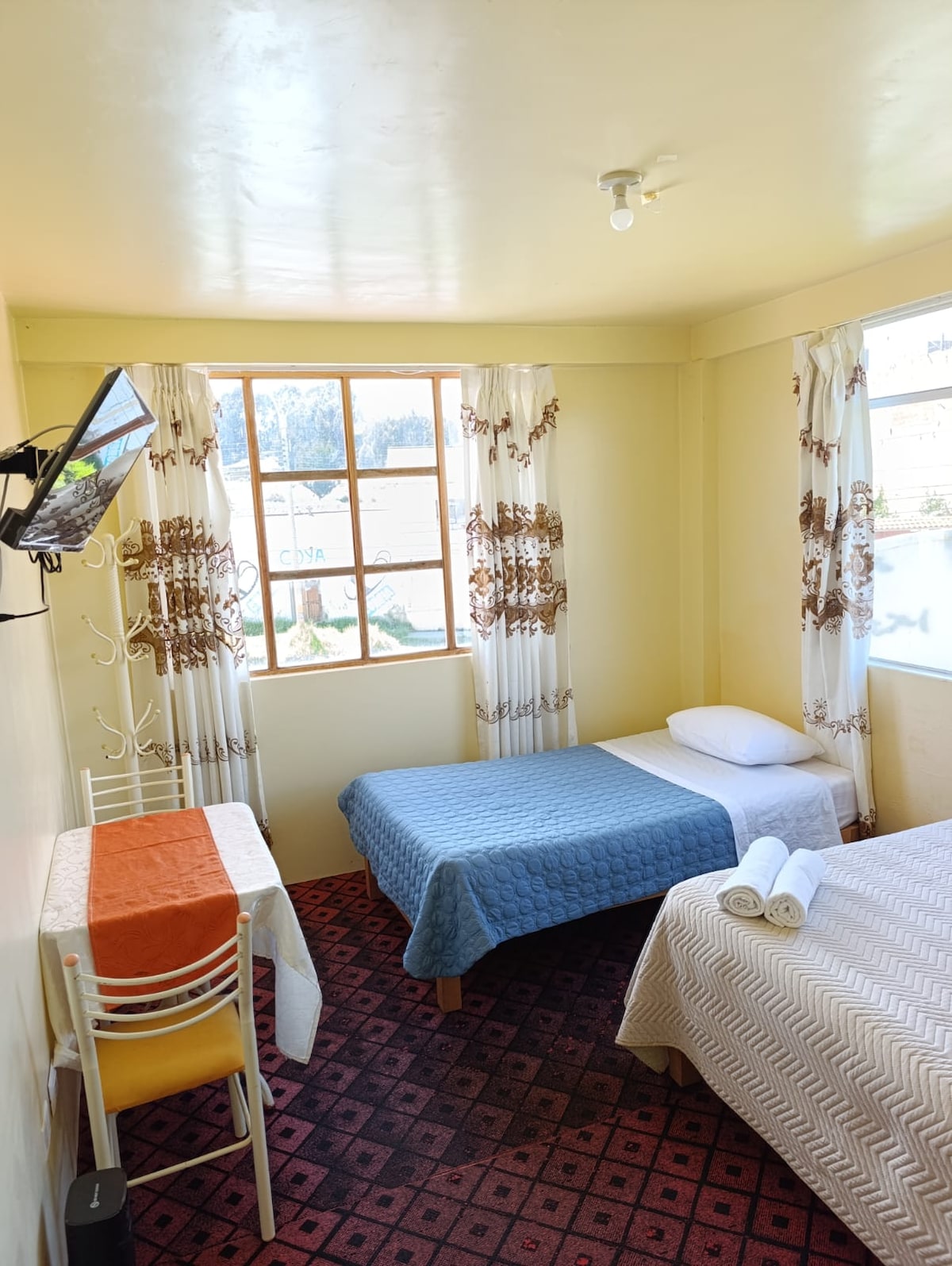 Hotel Summita VIP double room with a view of the outside natural landscape very close to Lake Titicaca capacity for three people room with air conditioning, heating garage or parking and breakfast included