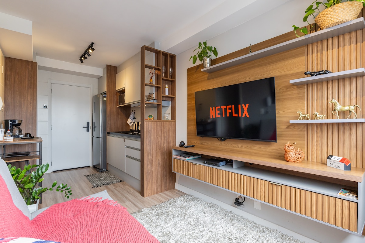 Welcome to this new apartment, with 1 cozy bedroom and 1 en-suite, and a comfortable stay for up to 3 people. Just a 5-minute walk from 2 metro stations and the vibrant São Paulo nightlife and all the city has to offer. Enjoy the rooftop pool, 500Mb Wi-Fi and 50" TV with Netflix and Amazon. We offer the comfort you need for an authentic urban experience. Make the most of your visit to São Paulo, whether for leisure or business, by booking this strategic point right now!