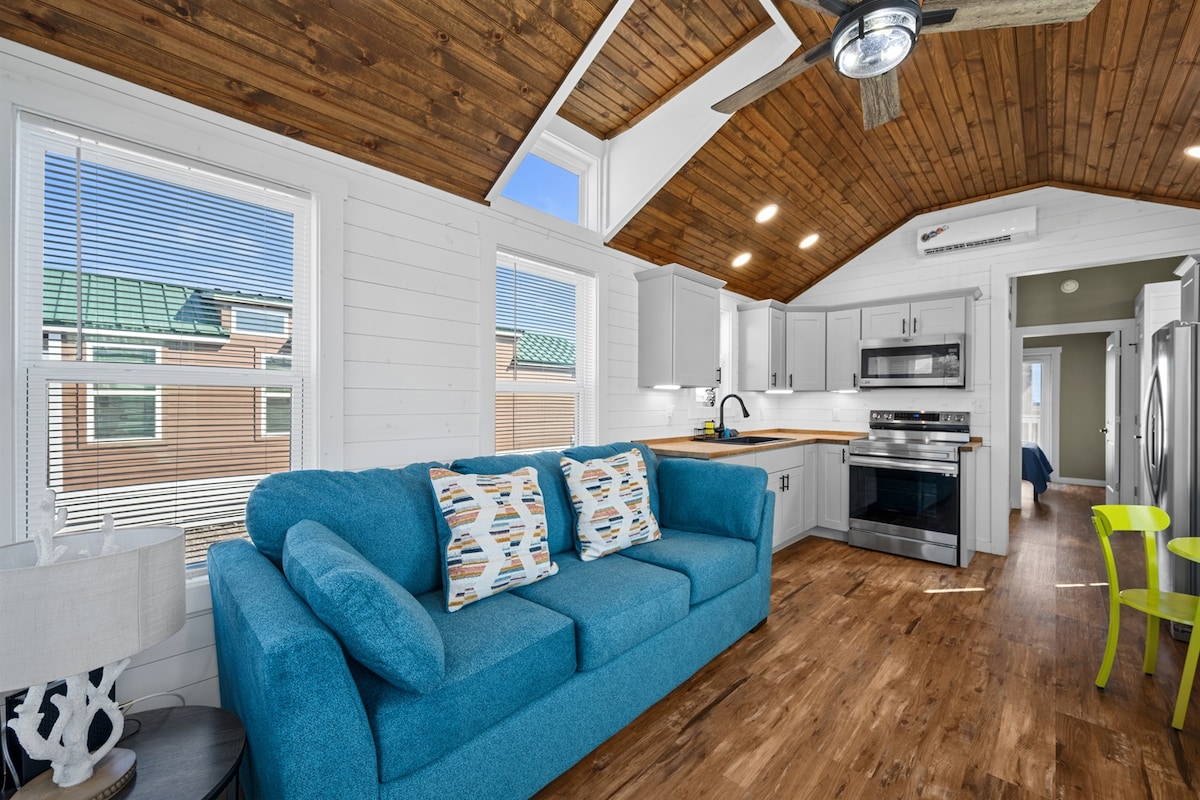 Enjoy your getaway at this amazing coastal gem! Beautiful 2 bedroom, 2 bath home (sleeps 8) and 3 airstreams (each sleeps another 3 to 4 guests) allow for large parties... think family reunions, bridal parties, etc. Large Palapa hut with outdoor TV and speakers, 5 decks (rooftop deck, too!), hot tub, and fire pit allow for tons of entertaining. The location is also a bonus! Walking distance to local shops, restaurants, bars, and fishing pier make this the best choice for your next getaway!