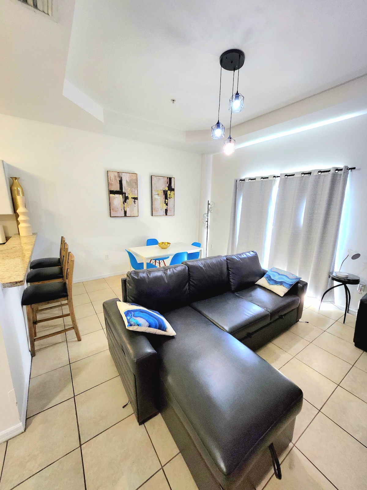 Modern and updated apartment with 2 bedrooms, and 1 full bathroom. The apartment is comfortable and spacious, has 3 beds (1 king, 2 tweens ), a fully equipped kitchen, TV in every room, Wi-Fi, a heated pool, and one assigned free parking. Great location, 5 minutes walk to the beach, local bars and restaurants. Close to Aventura Mall, and all of Miami's attractions. 35-minute drive to either Miami International Airport or Fort Lauderdale Airport. STR-01528