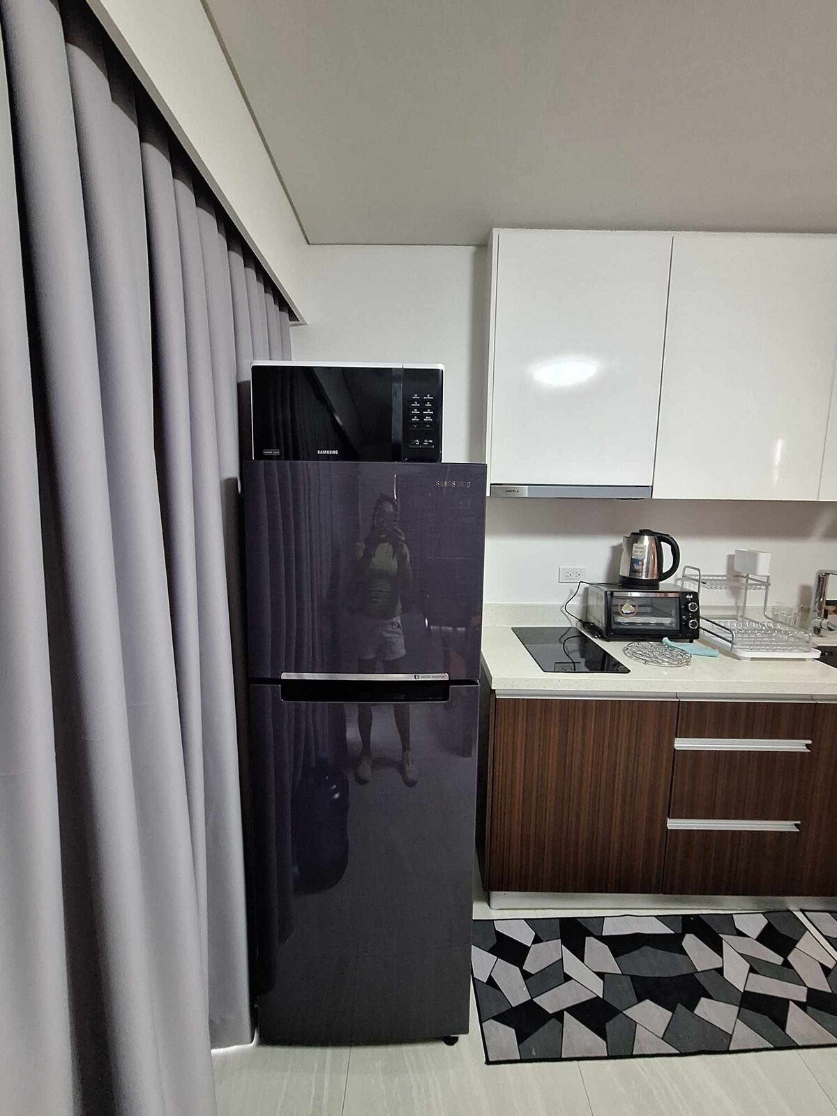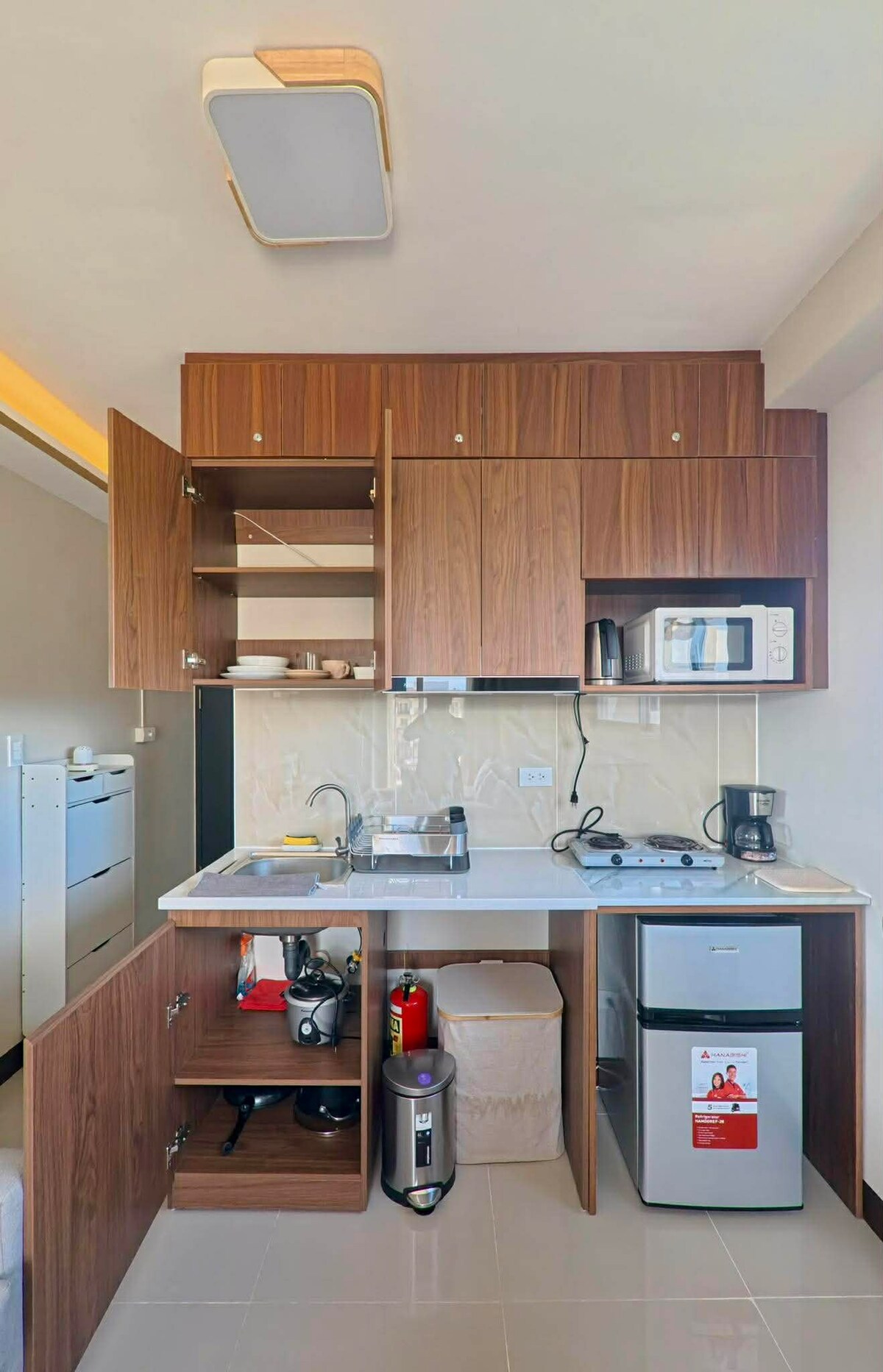 Resort like ambience Korean inspired design Brand New studio type condo with superb amenities. • 12th flr. w/ balcony view of CCLEX, City Skylines, mountain and sea • Double bed w/ pullout hotel like mattress and pillow with protectors lamp shade • Dining Area/Washing Machine • 214 MBPS wifi, TV 50 inches 4K HD signed in Netflix • Kitchen Area with basic cooking wares & appliances • Free use of 2 Olympic size Swimming Pool and a Kiddie pool • Smart Lock Check-in • Elevator