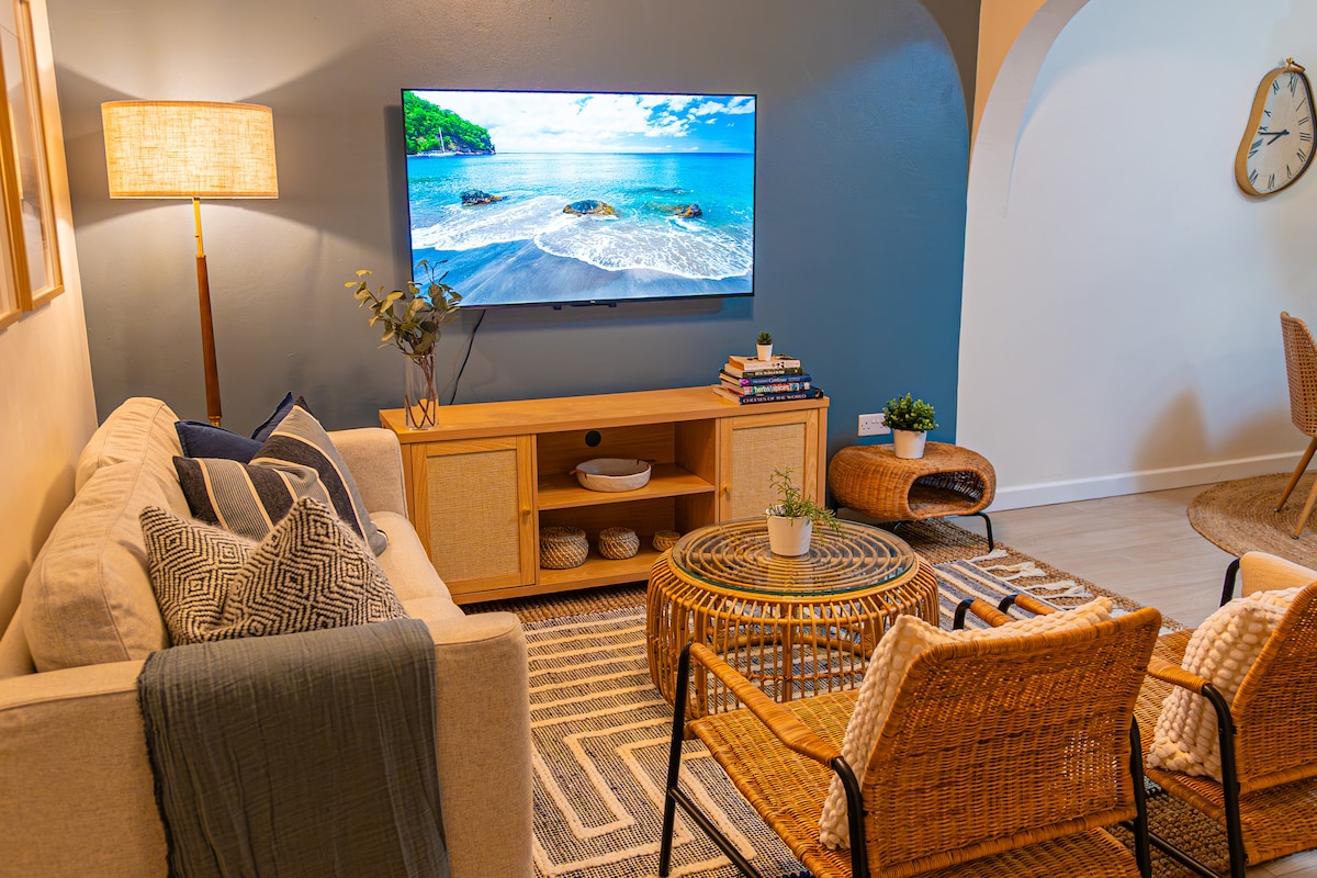 Paradise Palms Luxury Condo by La Vie Kweyol Properties Inc., puts you in the heart of Rodney Bay, minutes from beaches, dining, shopping, and nightlife. Enjoy sleek design, A/C, high-speed WiFi, stainless steel appliances, smart entry, and in-unit laundry. Perfect for travelers seeking more than a place to sleep, this bold, stylish retreat delivers elevated island living with every comfort at your fingertips.