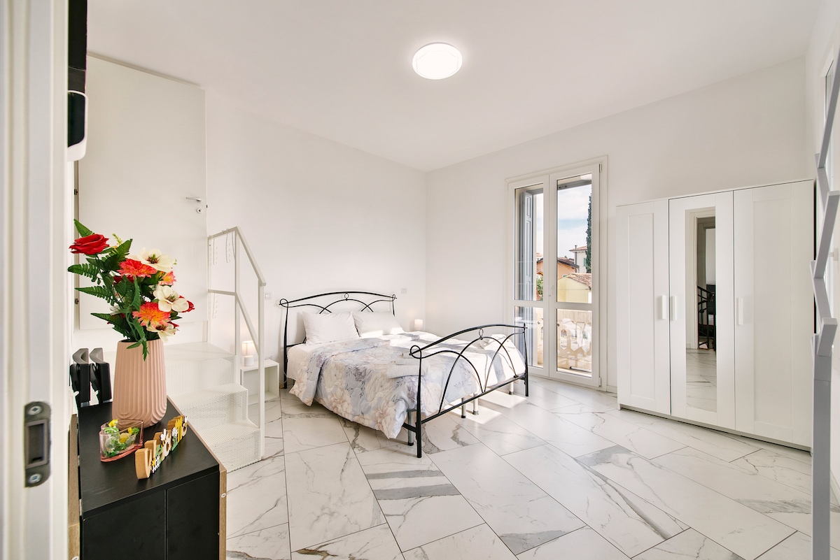 Welcome! You'll have the entire first floor (about 100 sqm) at your disposal, with bathroom bedroom private, and a spacious living room. We'll only share the entrance and the kitchen, as we live upstairs. We offer a cozy and family-like environment, ideal for families, couples, or solo travelers seeking privacy and comfort. Feel at home and enjoy your stay with all the necessary convenience and tranquility. 2KM from the city center, outside the ZTL 3KM from P. Nuova Station 9KM from VRN Airport