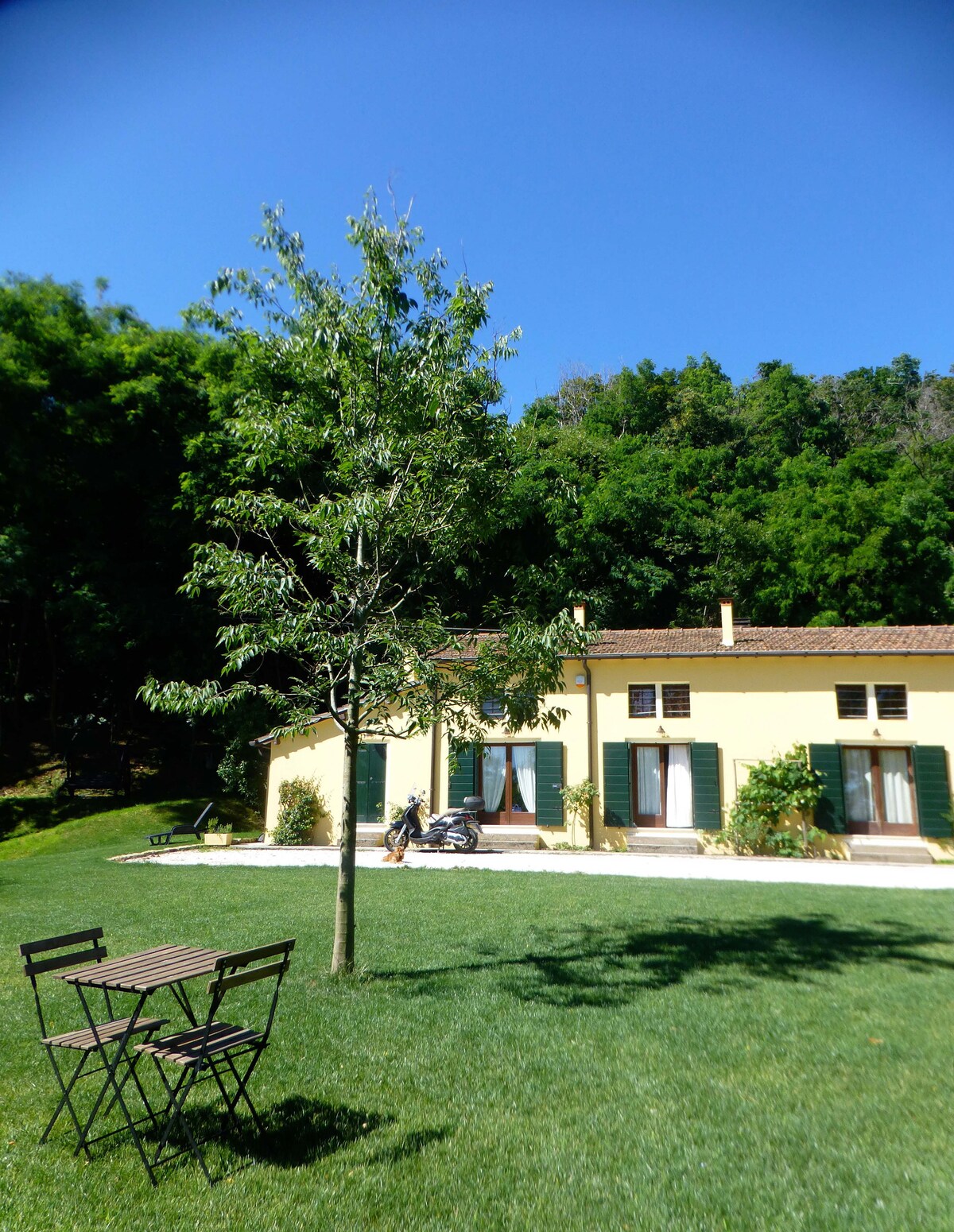 Kick back and relax in this calm, stylish space. Accommodation located on a hillside within the Euganean Hills Park. Recently renovated, about 100 sqm, divided into two floors, it comfortably accommodates 4 people with a double bedroom and a bedroom with a bunk bed for children. Kitchen, sitting area and bathroom with washing machine. Air conditioning. Strategic location for beautiful walks - bike and car where you can visit the wineries of the area and more