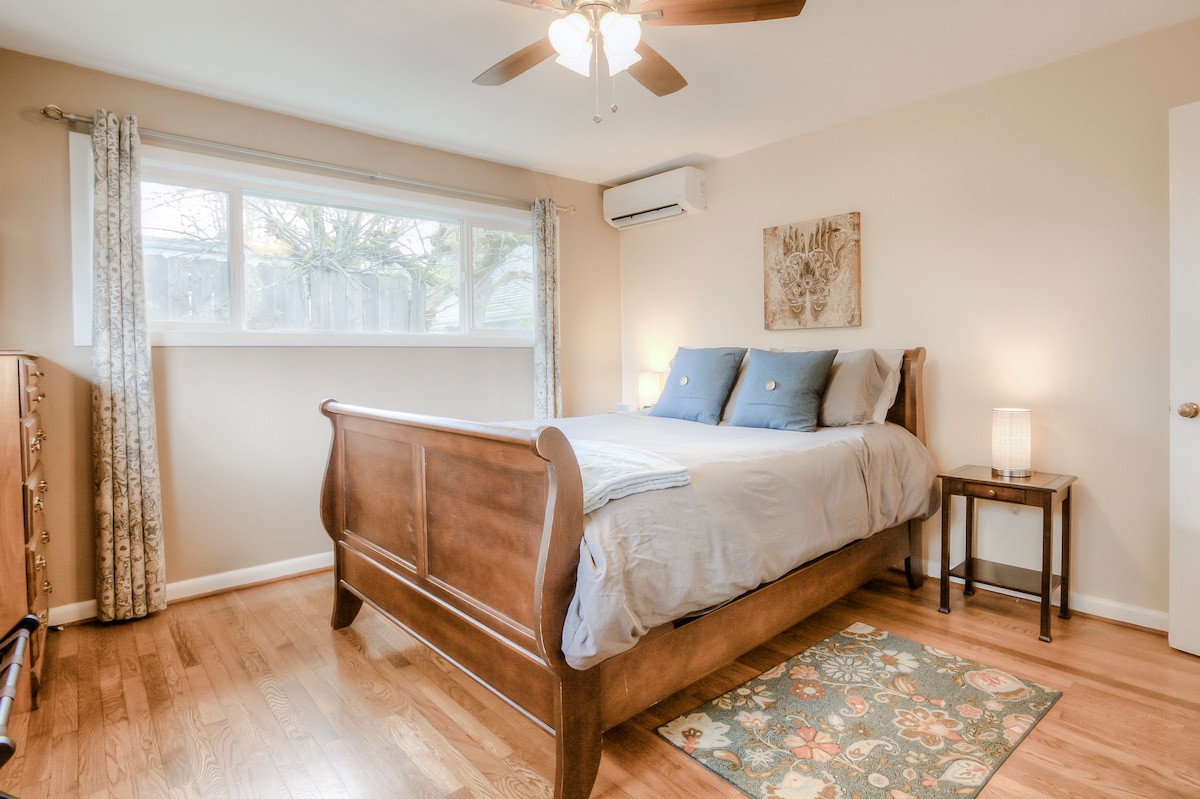 This spacious and private duplex apartment is in a very quiet neighborhood, centrally located near amenities and all the fun Corvallis has to offer. Located in a walking neighborhood close to campus, downtown, the hospital, grocery stores, and the tech firms. It has a private backyard, a large family room, a kitchen, W/D, A/C, wifi, smart TV (with Hulu, Netflix, Amazon, and more), a supportive queen bed, comfortable sofa bed (no crossbar), and a daybed that can pull out to make a king.