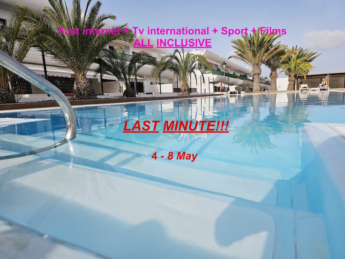 The apartment for exclusive use is located in Corralejo within a residential complex with a swimming pool and solarium. It borders the “Parque Natural de Corralejo” and is about 400 m from the famous “Grandes Playas” and the “Dunas de Corralejo”. The accommodation consists of a bedroom, living room with kitchenette, bathroom and a large terrace. Super Fast WI-FI Internet Fiber connection and linen included in the rental price. Free parking available.