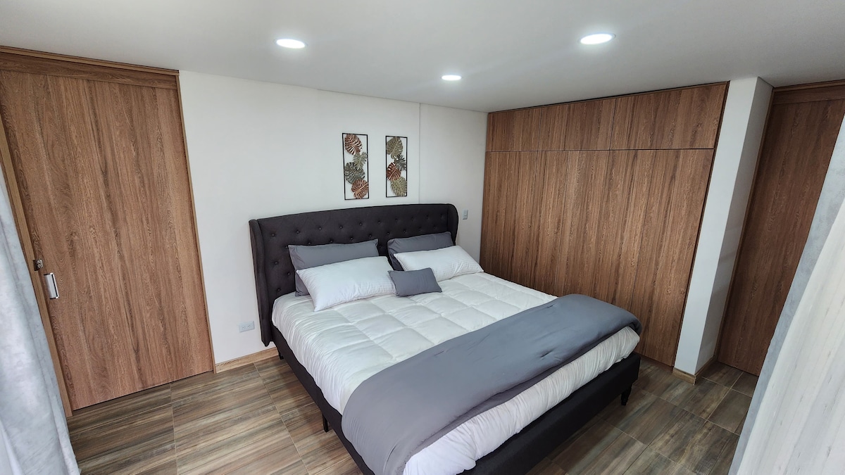 Cozy "Rest" Loft in the north of Bogotá, with an amazing view! Swimming pool, Turkish bath, and gym inside the condominium. The building has a shopping area where you will find restaurants, pharmacies, and supermarkets. 5 minutes from La Colina Park shopping center 24-hour security, 1 parking space available, and easy access to the city's main avenues and public transportation. Enjoy the great view of Bogotá from the balcony to take in an unforgettable sunrise and sunset!
